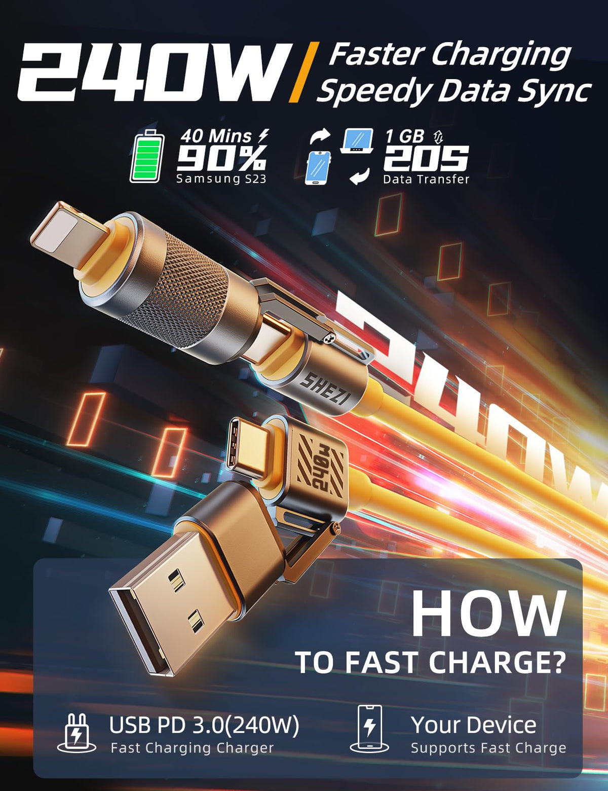 Jixivor Usb C Cable [Shezi-Style] 4 In 1 240W Usb C To Usb C Charging Cable Charge Any Of Your Devices With The 4 In 1 Charging Cable, It Combines 4 Ports1??Usb A To Usb C2??Usb A To Lightning3??Usb C To Lightning4??Usb C To Usb C, One Cable For All! Lightning-Port: With Charging And Data Transmission Functions. Compatible With Phone 15 14 Plus/ 15 14 13 12 11 Pro Max/ 15 14 13 12 11 Pro/ 15 14 13 12 Mini/ Se/ 15 14 13 12 11/ Xs/ Xs Max/ Xr/ 8/ 8 Plus/ 7/ 7 Plus/ 6S/ 6S Plus/ 6 Plus/ 6/ 5/ 5S, Pad Air/ Air 2, Pad Pro, Pad Mini Pod Touch. Type C-Port: Have Charge Function. Compatible With Samsung Galaxy Uitra S23 S22 S21 S20 S10 S9 S8, New Book 2015, Book Pro 2016, Chrome Book Pixel 2015, Google Nexus 6P/5X, Oneplus 2/3/4/5, Huawei, Moto Z Force, Moto Z2 Play/Google Pixel/Xl/2/2 Xl And More. Usb A-Port: Have Charge Function. Compatible With Most Android And Windows Phones, Tablets And Many Other Devices Including/Htc/Nokia/Lg/Sony/Bluetooth/Speakers/Headphone/Earphone/Mp4/Mp3/Ps/Gps Device. Jixivor Usb C Cable Offers 5 Lengths: 1Ft-3Ft-5Ft-10Ft (30.5Cm-91.5Cm-152.5Cm-305Cm). Easy To Place In Your Handbag, Laptop Bag, Or Pocket. What You Will Get:4 In 1 Usb Charger Cables (Combo Lightning/ Type C*2/ Usb A Ports).