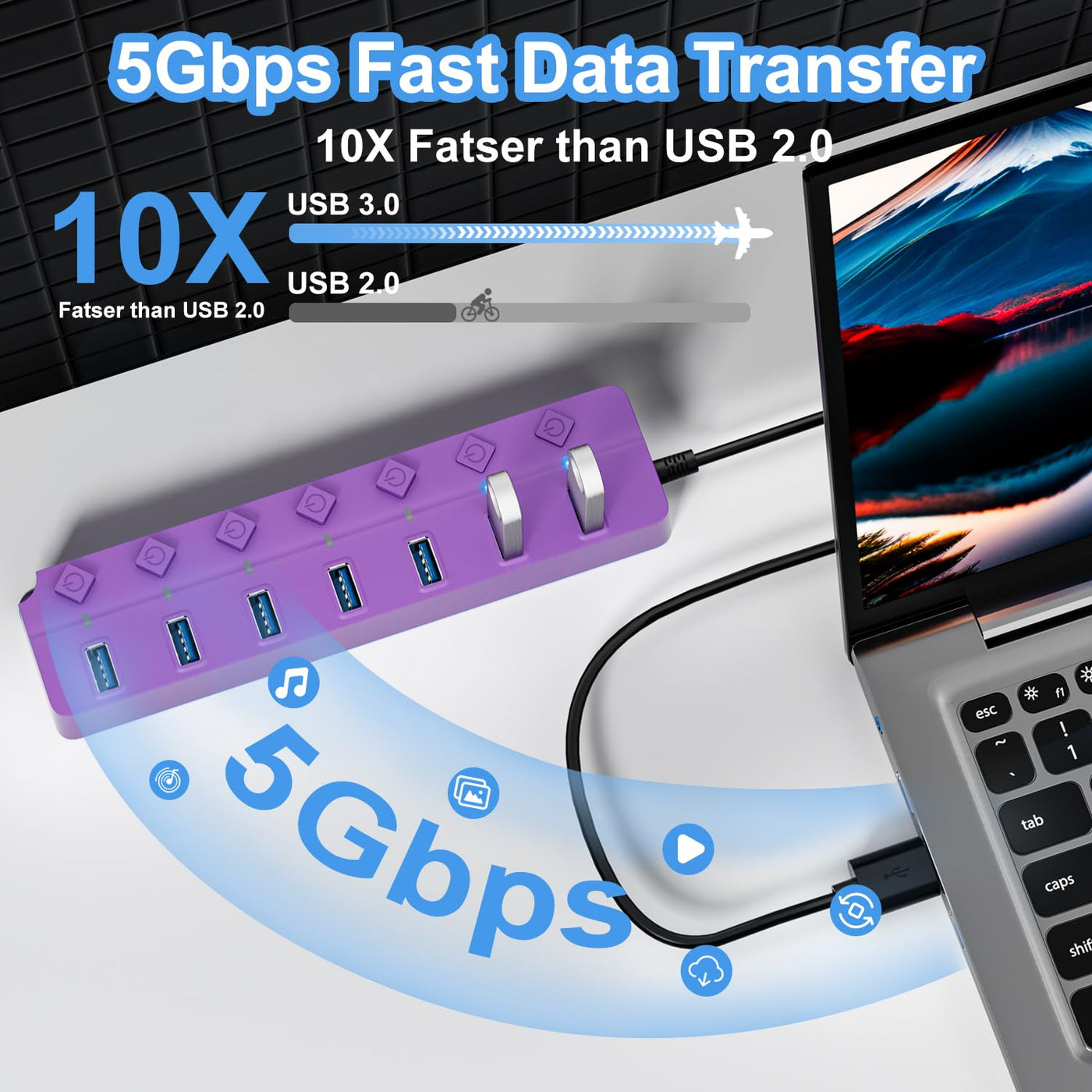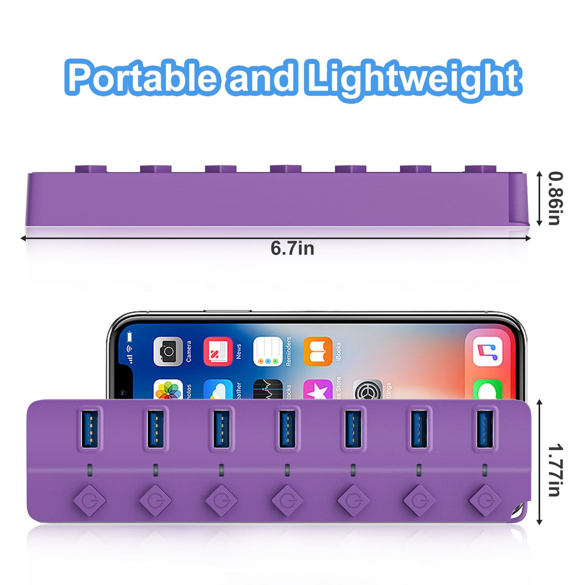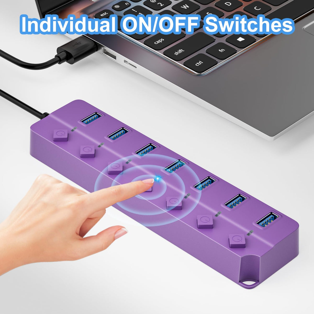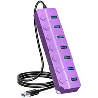 Onfinio Usb Hub 3.0, 7 Port Usb Hub Splitter With Individual On/Off Switches And Lights, 3.2Ft/1M Long Cable Compatible With Macbook, Laptop, Surface Pro, Ps4, Pc, Flash Drive, Mobile Hdd Purple