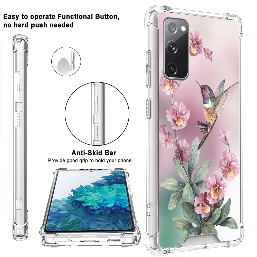 Ook Clear Case Compatible With Samsung Galaxy S20 Fe 5G, Pink Hummingbird Pattern Flexible Tpu Shockproof Anti Scratch Bumper Tr
