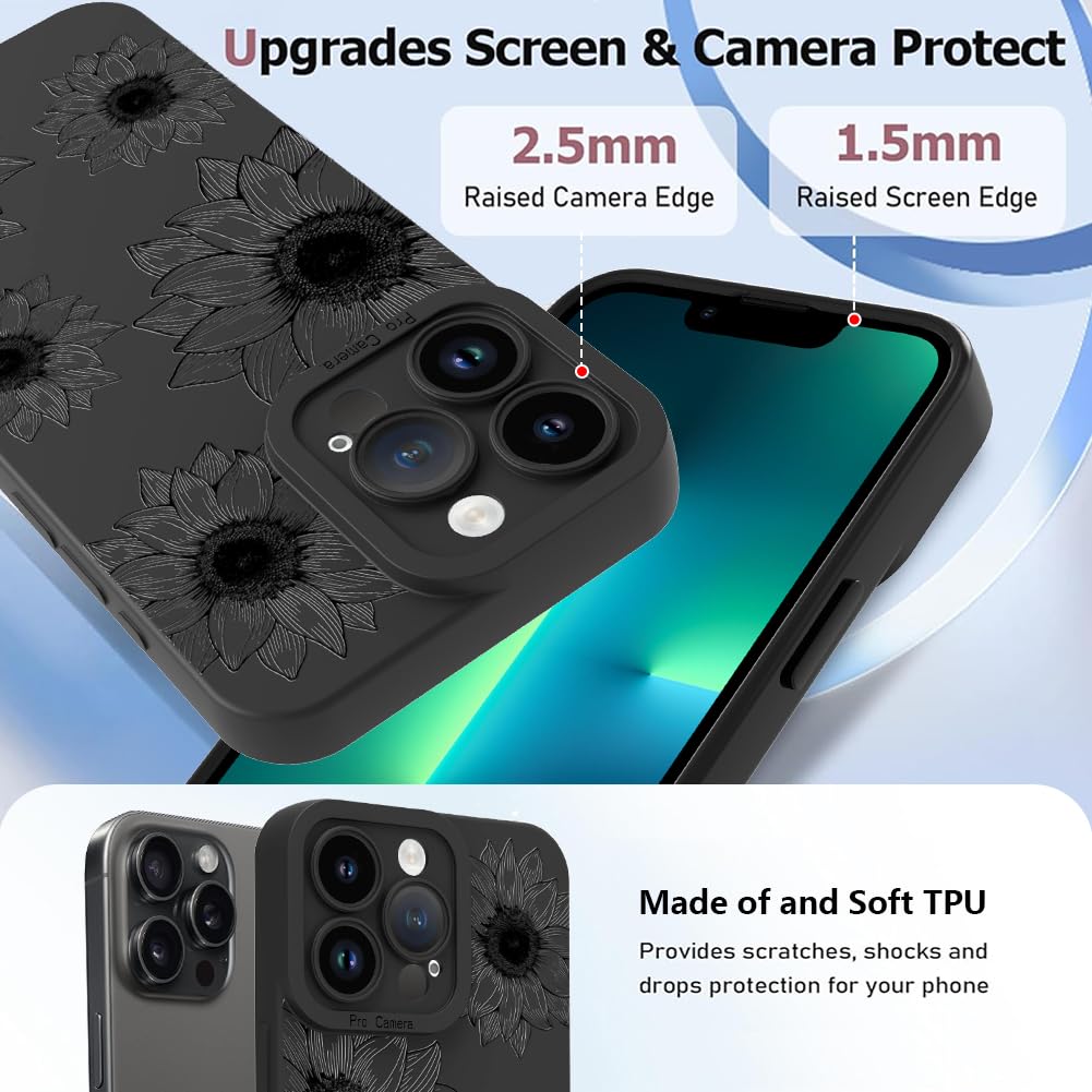 Cute Sunflower For Iphone 13 Pro Max Phone Cover.The Cute Sunflwer Pattern Shows Your Case More Fashionable And Elegant. Made With A Unique Printing Technique, These Patterns Wont Rub Off Or Fade.Great For Girls And Women?The Case Has 1.6Mm Screen Bezels And 2.5Mm Camera Bezels, These Raised Lips Can Prevent Daily Scratches And Provide Full Body Protection.Our Attractive Floral Pattern Design Phone Casemade Of Flexible Tpu, Thin And Lightweight, Touch Feels Soft, Provides A Smooth And Comfortable Grip Feeling?No Greasy Fingerprints Or Annoying Scratches Left.Precise Cutouts For The Connector Port, Speakers, Camera And All Buttons Are Easy To Access And Do Not Need To Remove The Cover, Support Wireless Charging.