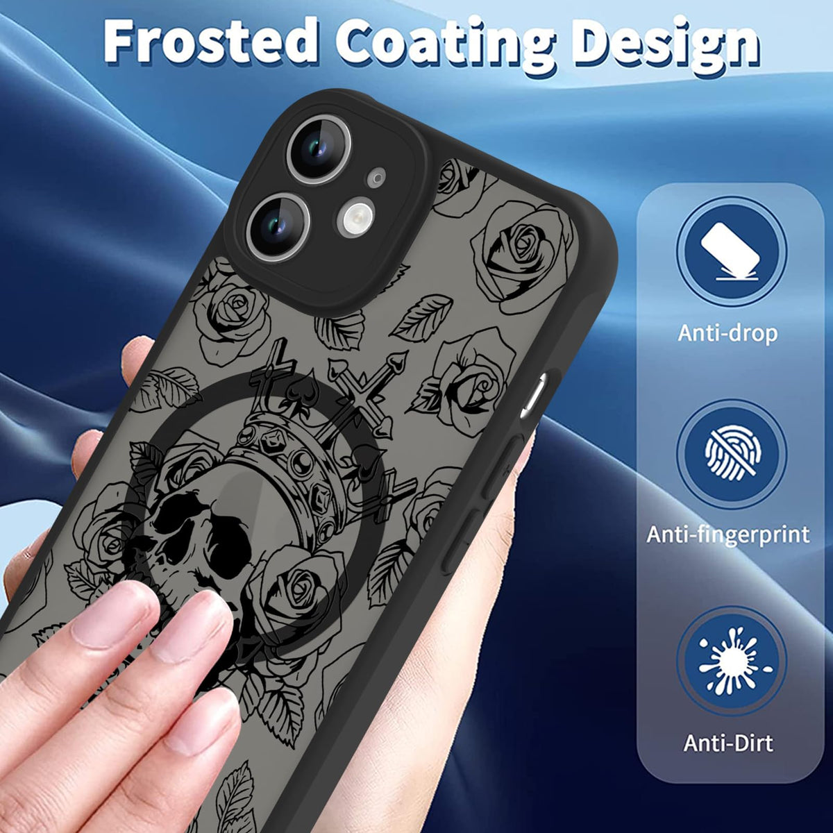 Ook Magnetic For Iphone 11 Case Black Flower Skull Pattern [Compatible With Magsafe] Slim Translucent Matte Camera Lens Protecti