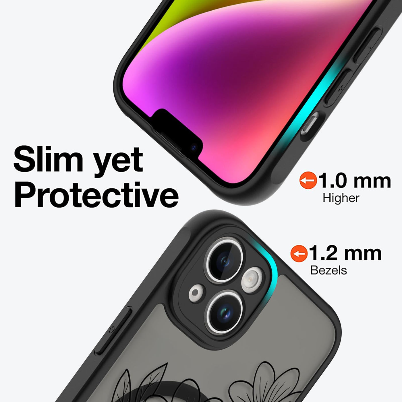 Ook Magnetic For Iphone 14 Case Black Flower Sunflower Pattern [Compatible With Magsafe] Slim Translucent Matte Camera Lens Prot