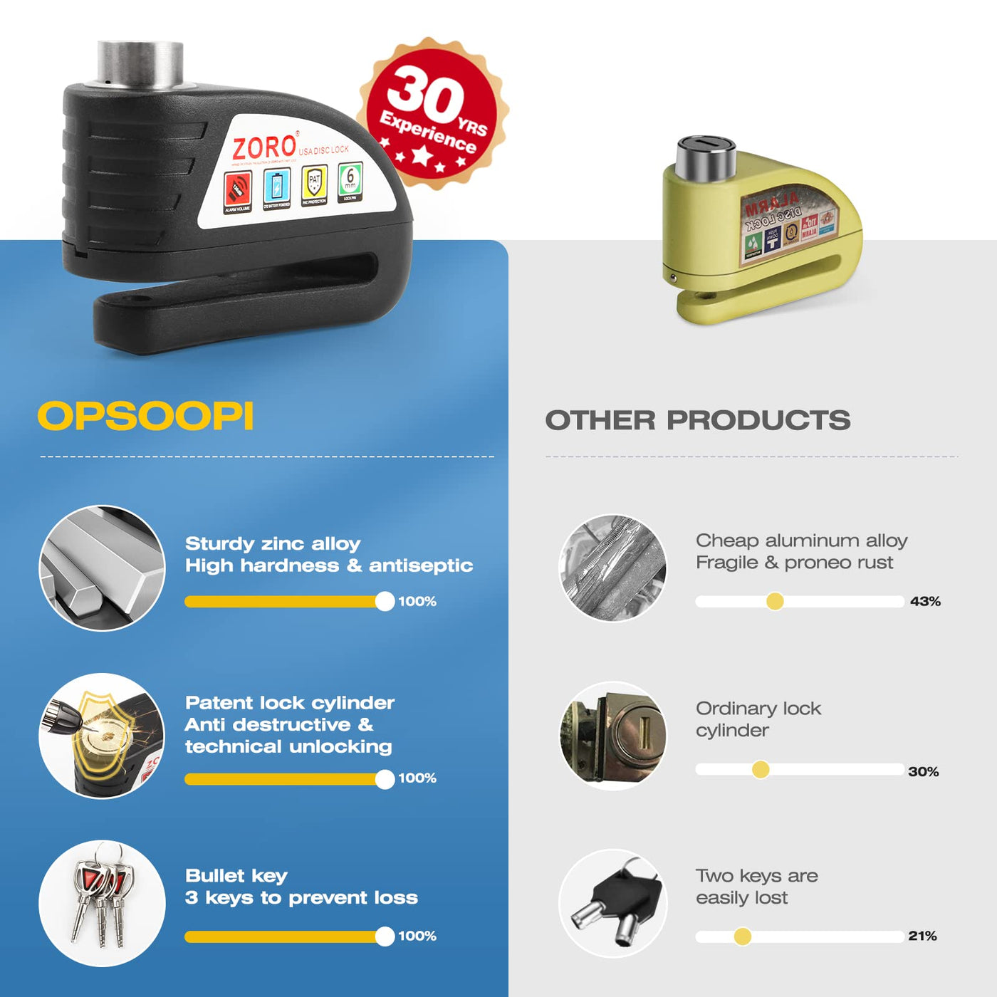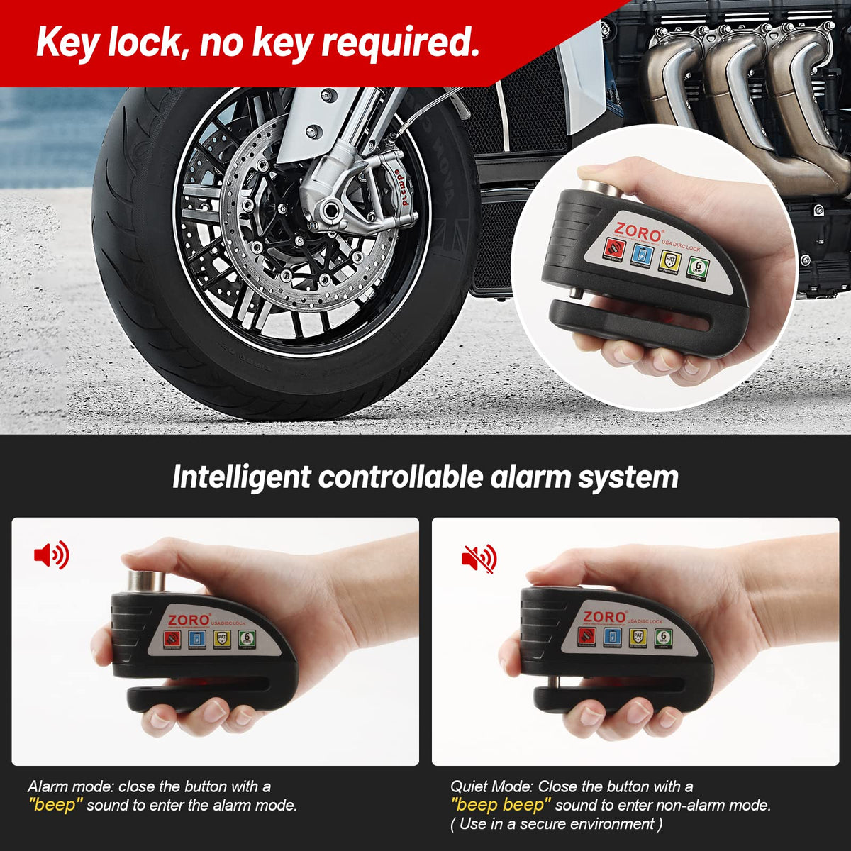 Opsoopi Anti-Theft Motorcycle Lock Aims To Provide The Best And High Quality Automotive Parts To Automotive Enthusiasts. ? Protect Your Ride! Nothing Is Worse Than Getting Your Bike Or Quad Stolen, Thats Why Weve Developed This Anti-Theft Grip Lock Device. ? Professional Why Should You Trust Us? Because Were A Company That Focuses On Quality Products. Our Owners Have Raced And Rode Motorcycles For Over 30 Years So They Understand How To Make Awesome Products! ?Ultra-High Decibel Alarm System The 130Db Motorcycle Anti-Theft Device Can Deter Thieves And Make Them Afraid To Attack Your Vehicle! Only Need To Spend A Little Money To Protect Your Thousands Of Dollars Of Vehicles, Cost-Effective! ?Cool Way To Lock The Car When Driving Cool Off-Road Motorcycles, They Are Not Willing To Squat Or Bend Over To Lock The Disc Brakes. They Only Need To Stand For 3 Seconds To Lock The Handlebars. This Is Really Cool! ?It Is Suitable For Most Motorcycle Locks/Bicycle Locks With Disc Brake Discs. Motorcycles Locks Have Been Tested And We Dont Go Riding Without Ours. This Is Great For College Students That Dont Want To Have Their Scooter Or Moped Stolen From Campus Or Their Apartment! ? Motorcycles, Dirt Bikes, Road Bikes Atvs, Scooters, Crotch Rockets, Mopeds And More ? Easy To Use! Safely Secure Your Ride From Being Stolen In 3 Seconds Or Less. To Use, Simply Put The Lock Around The Handlebar And Secure The Lock By Pulling In The Front Brake Lever Or Clutch.