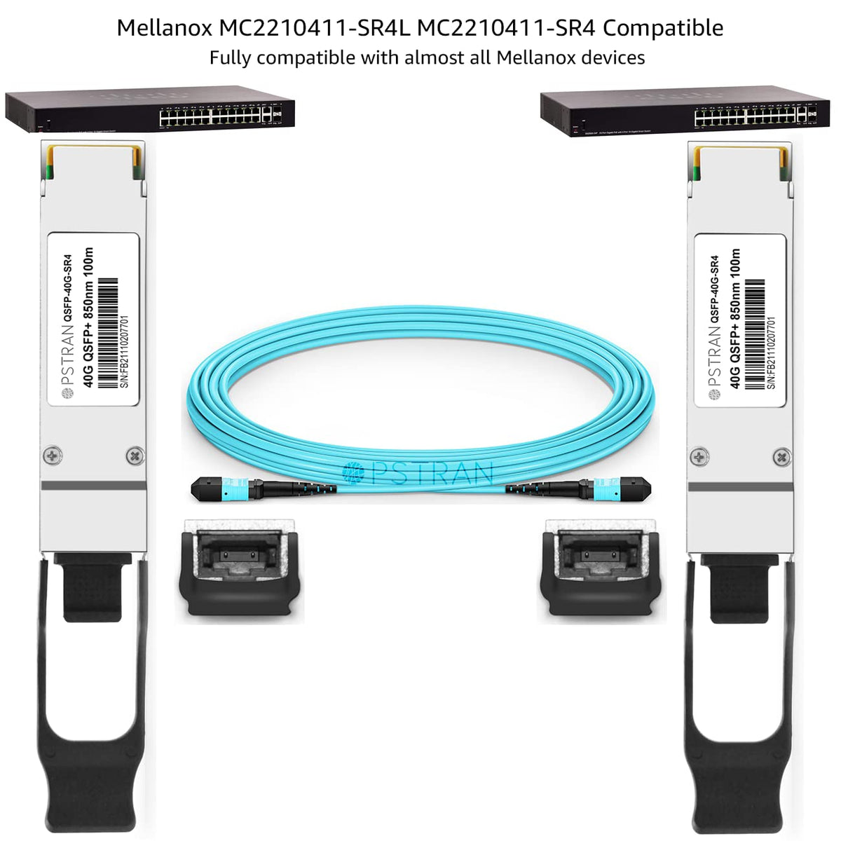 The Opstran Qsfp+ Module Adopts 12 Fibers Mtp/Mpo Male Connectors, Reaching A Link Up To 150M Over Om4 Mmf (100M Over Om3). This Transceiver Is Compliant With Qsfp+ Msa, Ieee 802.3Ba 40Gbase-Sr4 And Breakout To 4X10Gbase-Sr Standard. At The Same Time, It Is Completely Interoperable With All Standard 40Gbase-Sr4 Interfaces. Digital Diagnostics Functions Are Also Available Via The I2C Interface, As Specified By The Qsfp+ Msa, To Allow Access To Real-Time Operating Parameters. With These Features, This Easy To Install, Hot Swappable Transceiver Is Suitable To Be Used In Various Applications, Such As Data Centers, Campus And Computing Networks, Interconnections Within And Between Switches, Routers, Nics And Transport Equipment.