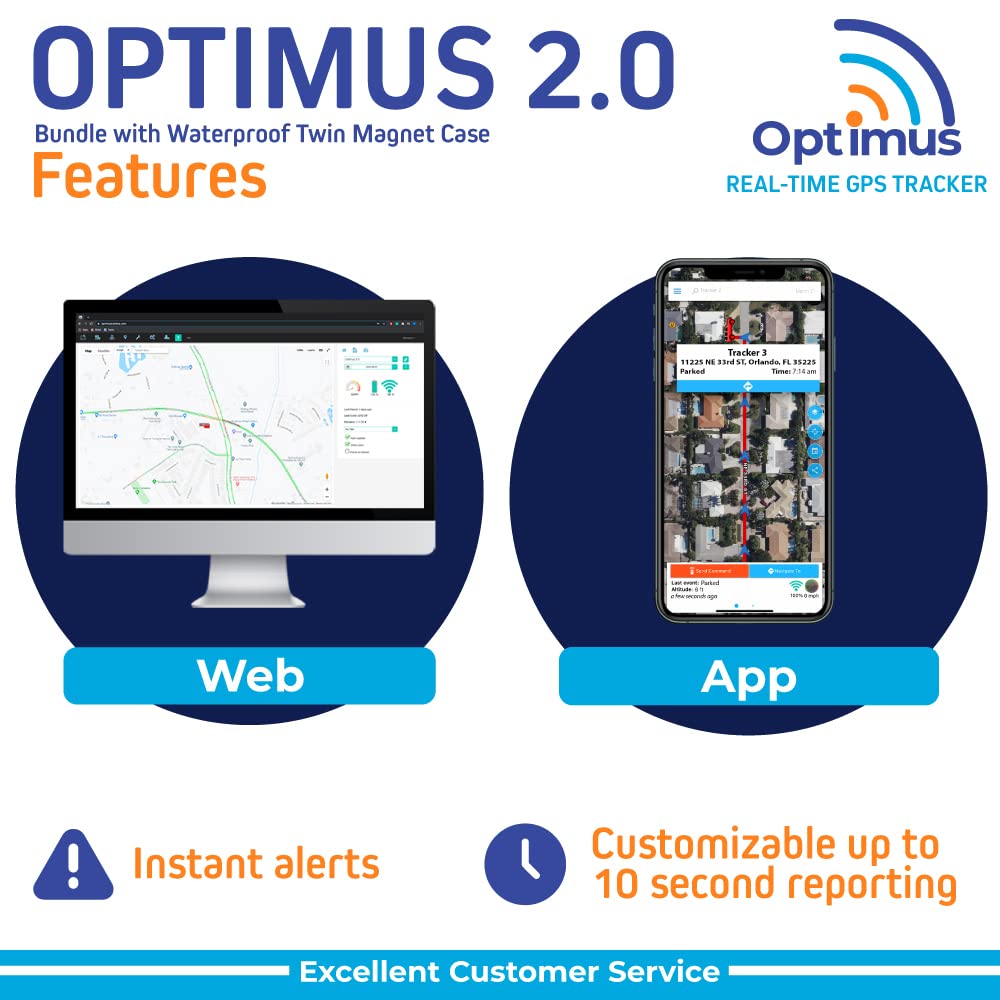 Optimus 2.0 Gps Tracker Bundle With Twin Waterproof Magnet Case For Vehicles, Assets 4G Lte Real Time Gps Tracking Device � Instant Alerts