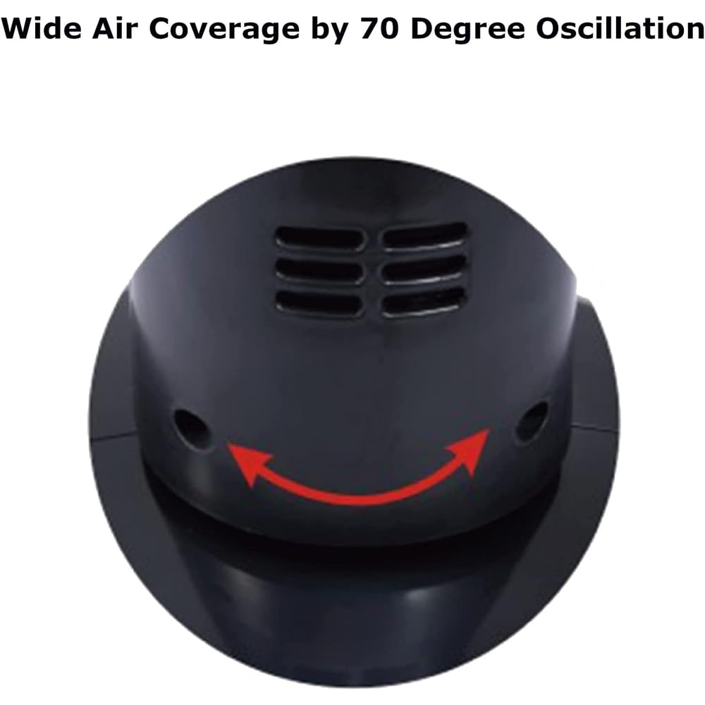 3 Speed Energy Saving/Whisper Quiet Operation Motor. 4 Position Push Button Switch (Off, Lo, Med And Hi). Up To 2 Hours Timer Rotary Switch. Wide Air Coverage Provided By 70 Degree Oscillation. Convenient Carrying Handle. Space Saving, High Performance Air Circulation. Easy Assembly, No Tool Assembly Required.