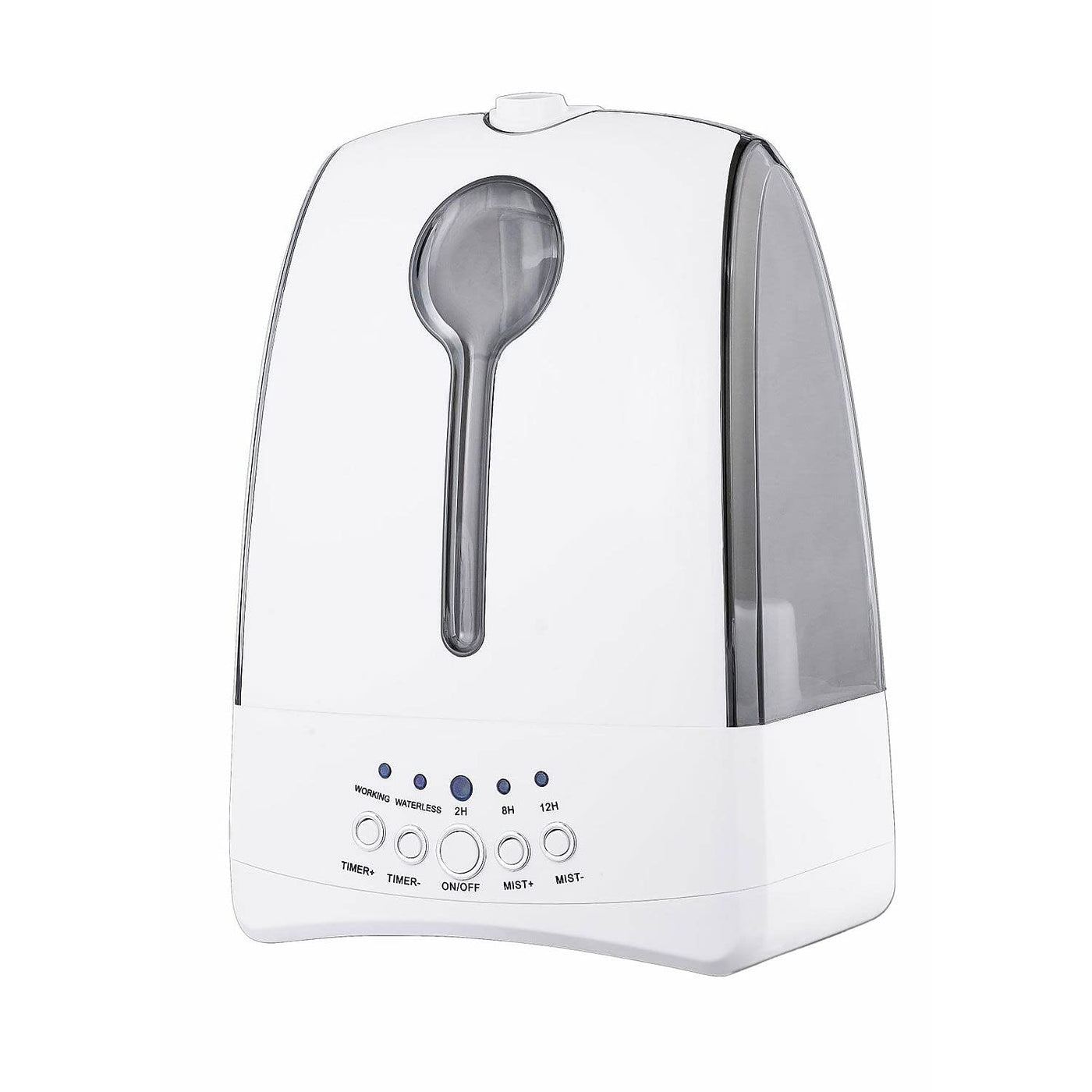 This Optimus Cool Mist Ultrasonic Humidifier Has A 1.5 Gallon Tank Capacity And Outputs 2.0 Gallons In 18 Hours. It Features A Water Empty Automatic Shut Off Switch And Refill Light And Has An Adjustable Mist Volume Control. Contains A Removable Transparent Tank With Handle For Easy Removal And Transport And Has A Whisper-Quiet Operations So It Wont Disturb Sleep.
