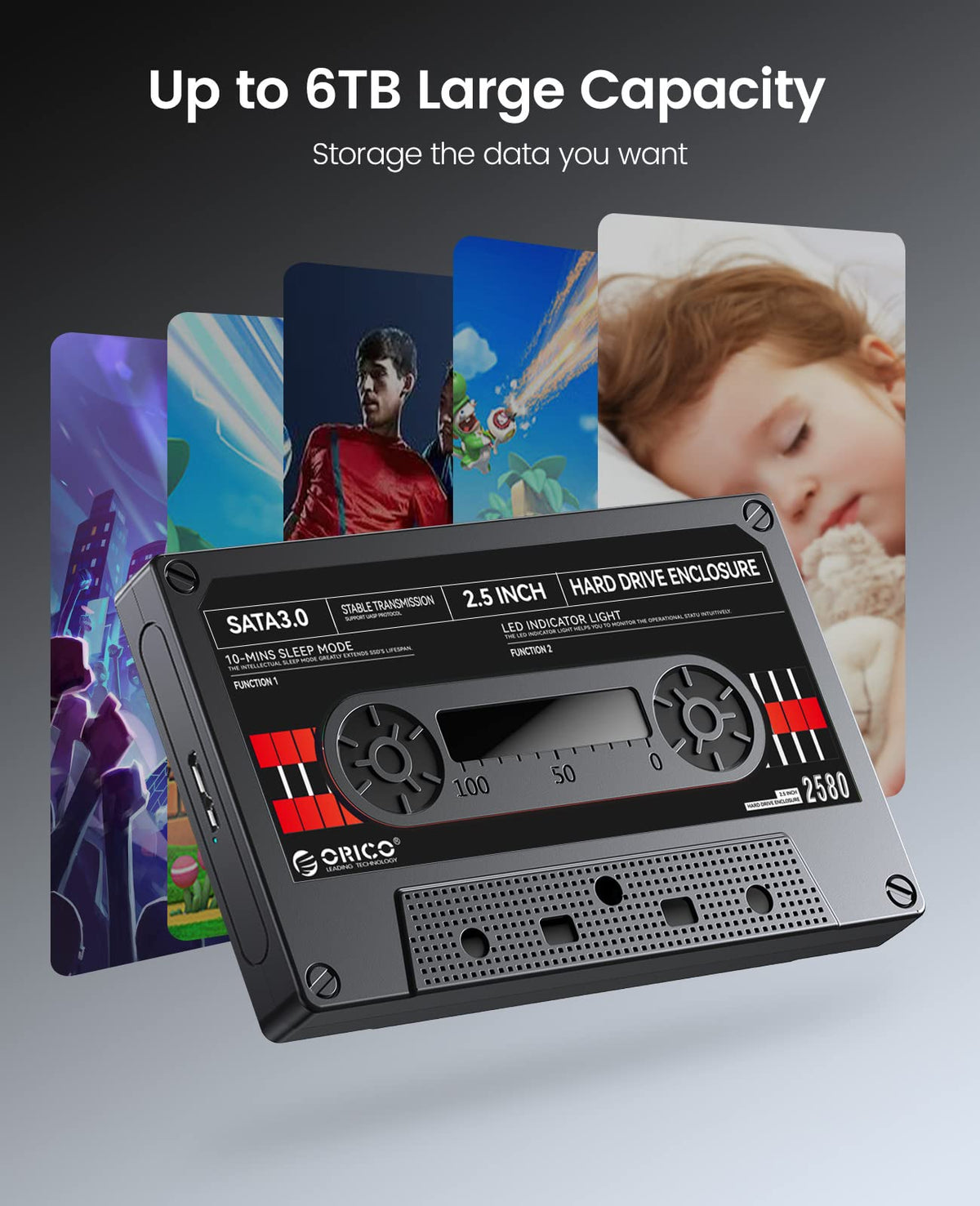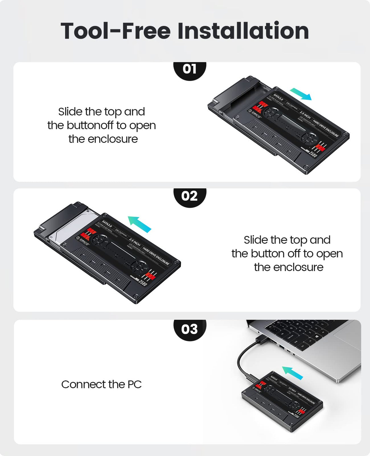 Orico 2.5'' Hard Drive Enclosure Sata To Usb3.0 Diy Sticker External Hdd Enclosure For 7/9.5Mm Hdd Ssd, Portable Hard Drive Case