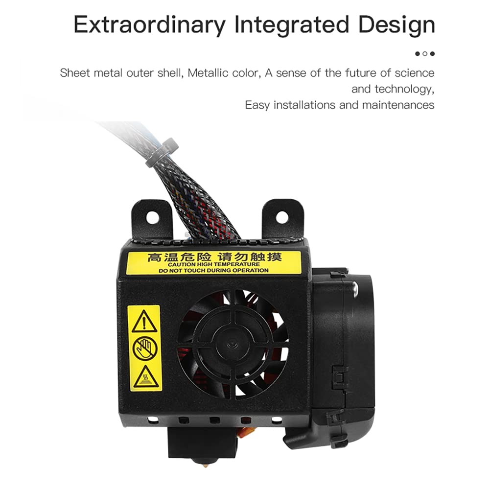 Q: What materials are used in the construction of this hotend kit?A: This hotend kit features an integrated design with a sheet metal outer shell and imported high-precision blue PTFE tube, which enhances durability and ensures a smooth and uniform feeding process.