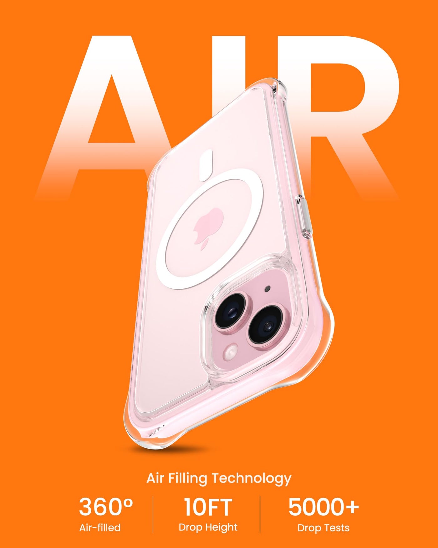 Ornarto Air Case For Iphone 15 Clear, Compatible With Magsafe, Military Grade Drop Protection Cover With Built In Air Pink