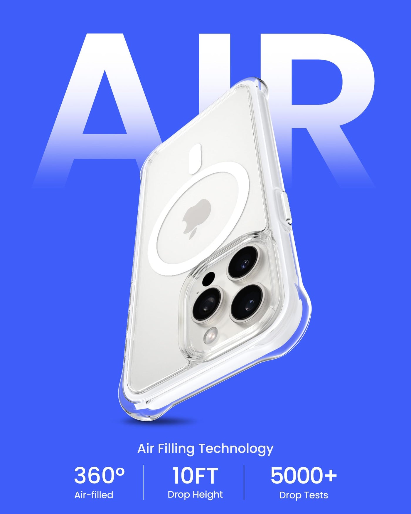 Ornarto Air Case For Iphone 15 Pro Max Clear, Compatible With Magsafe, Military Grade Drop Protection Cover With Built In Air Wh