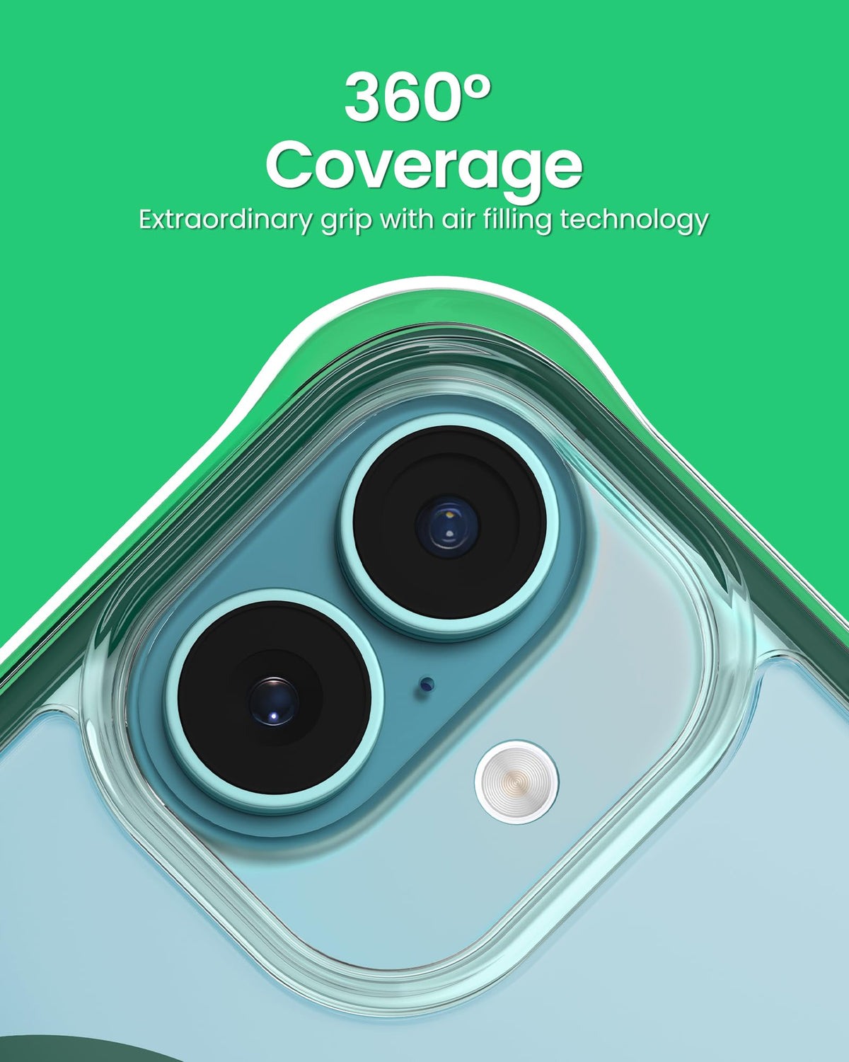 Ornarto Air Case For Iphone 16 Clear, Compatible With Magsafe, Military Grade Drop Protection Cover With Built In Air Green