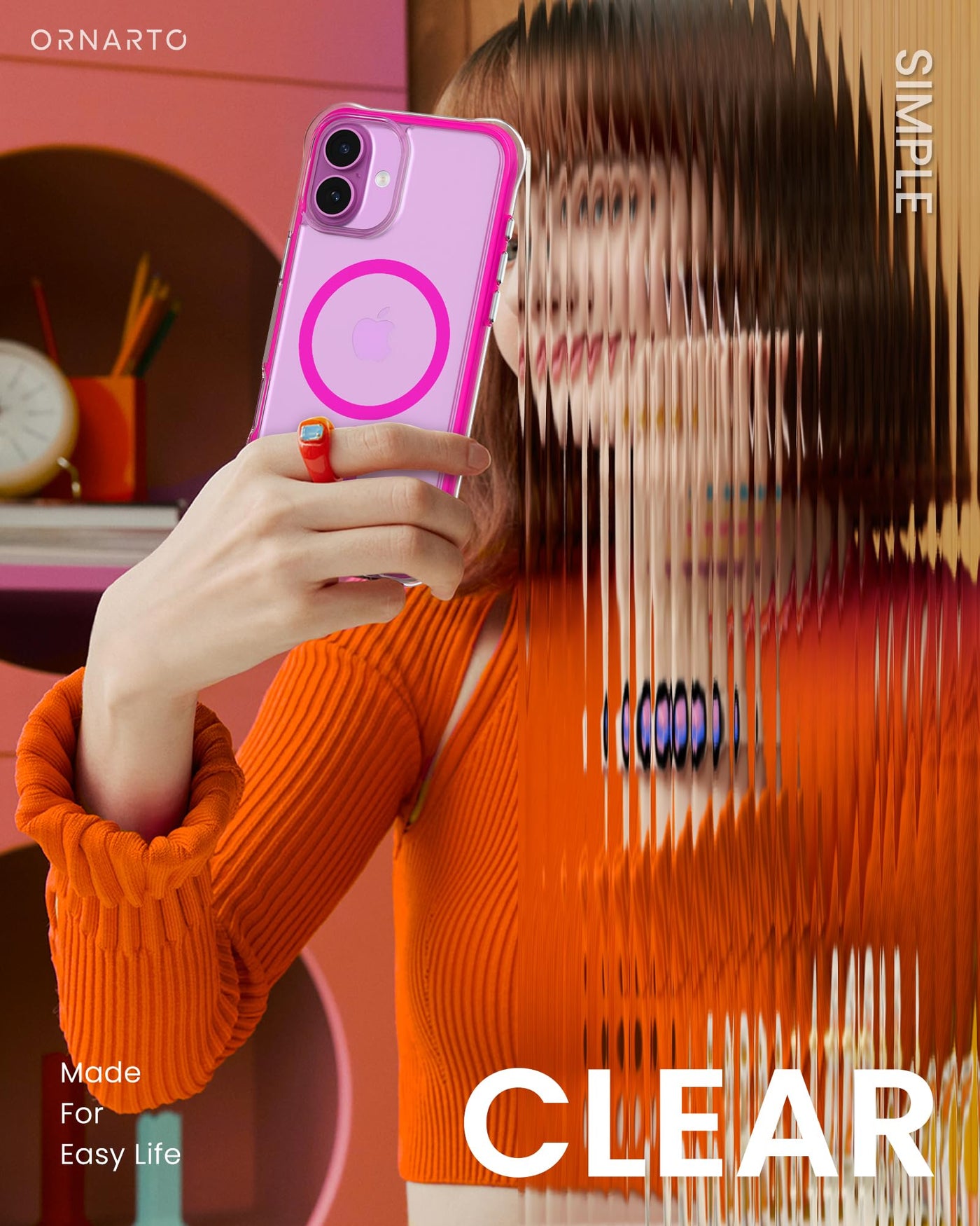 Ornarto Air Case For Iphone 16 Plus Clear, Compatible With Magsafe, Military Grade Drop Protection Cover With Built In Air Hot P