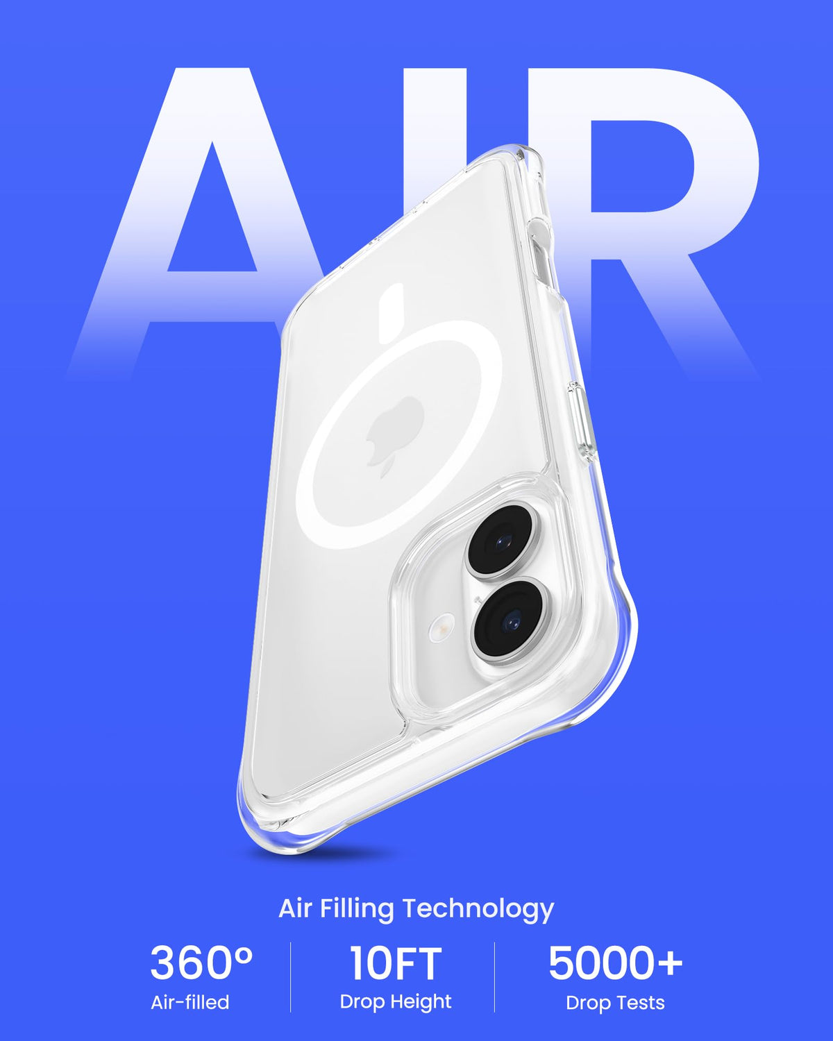 Ornarto Air Case For Iphone 16 Plus Clear, Compatible With Magsafe, Military Grade Drop Protection Cover With Built In Air White