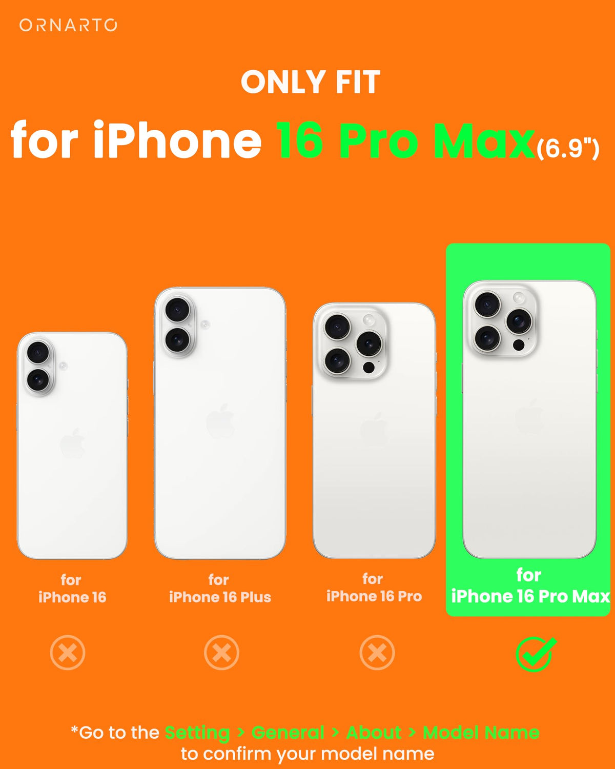 ?Attention: The Ornarto Case Is Only Compatible With Iphone 16 Pro Max ((6.9 Inch In Screen Diagonal Length, Double-Lens Rear Camera,2024 Released)) (??How To Confirm Your Model Name: Go To Your Device ''Setting-General-About-Model Name'' ?Great After-Sales Service Your Problems Will Be Solved Professionally Within 24 Hours. We'Ll Be Here All The Time~A Satisfactory Solution Is Promised! ??How To Contact Us: [Purchased And With The Order Id]: Click ''Your Account'' ?Click ''Orders'' ?Find Ornarto Order ?Click ''Get Help''.