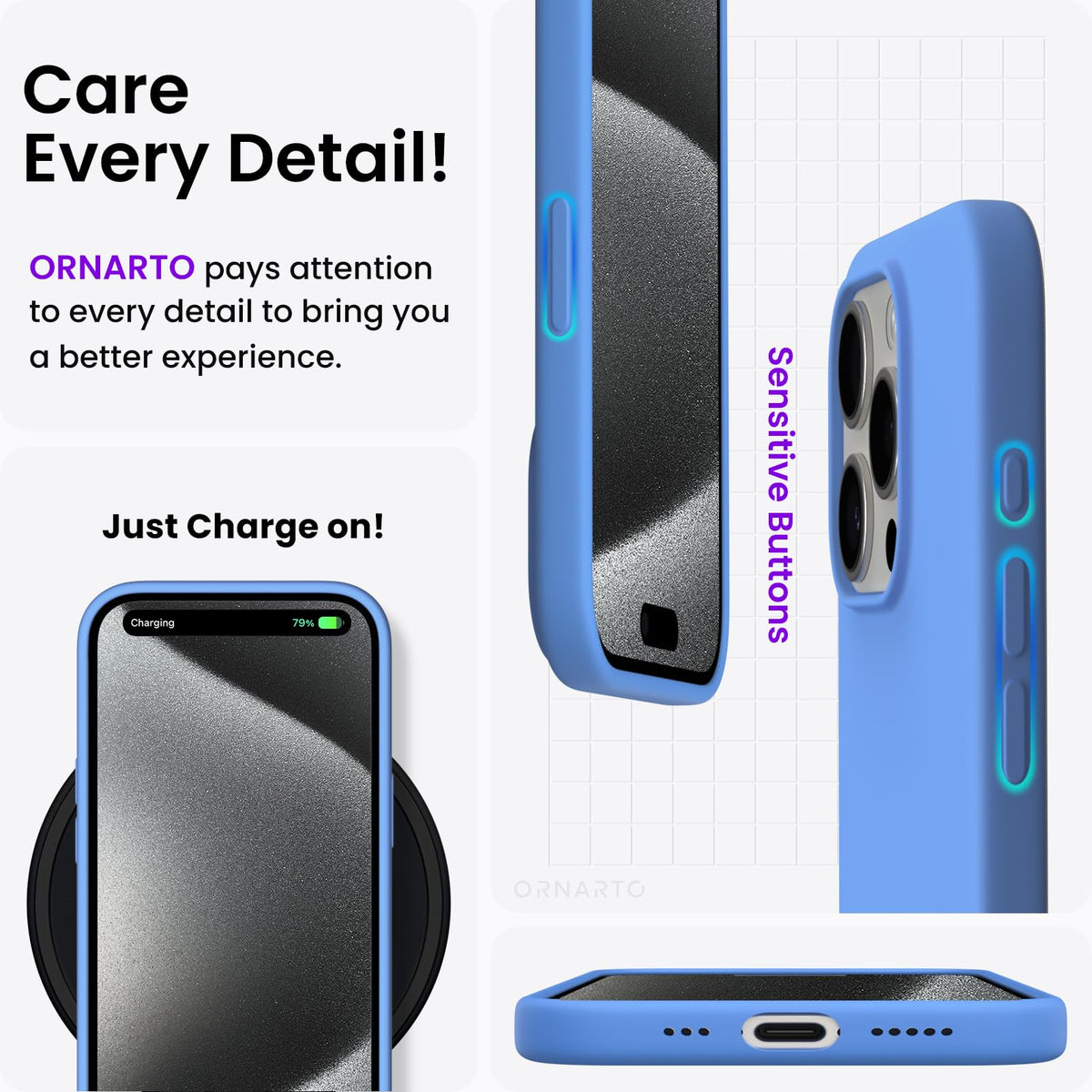 Q: What materials are used in the ORNARTO iPhone 15 Pro case?A: The ORNARTO case is made from premium liquid silicone, which provides a smooth touch, dustproof performance, and a sturdy dual-layer structure for enhanced durability. It has also passed SGS Drop Resistant and RoHS Safety Material certifications.