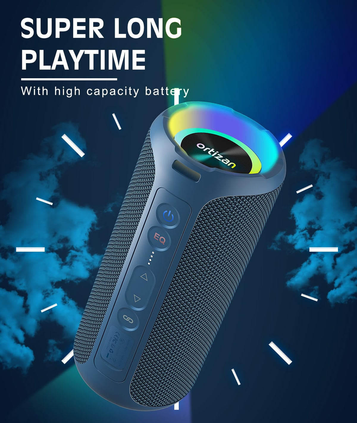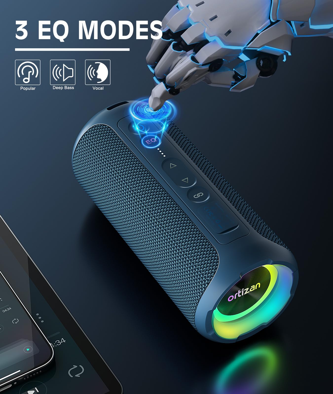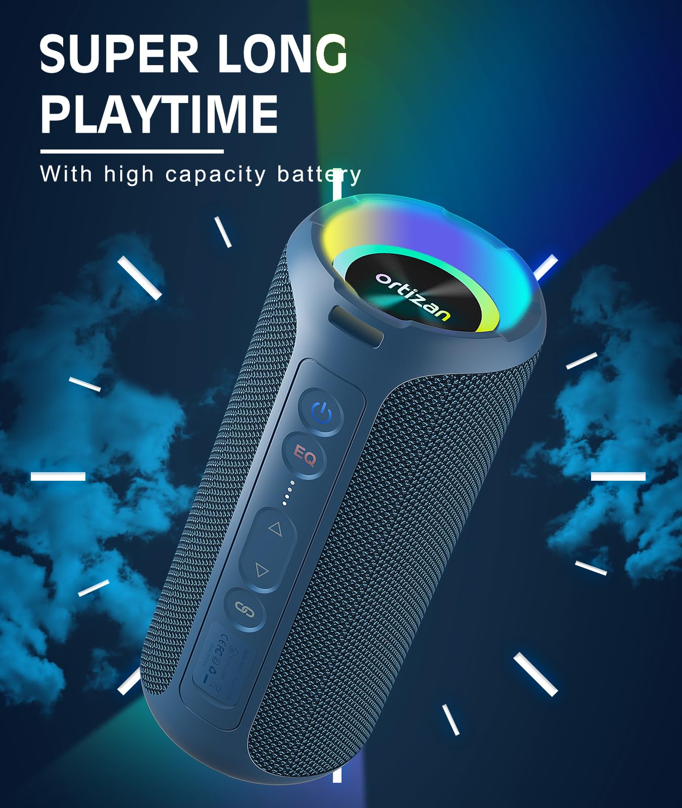 Bluetooth Speakers, Ortizan 40W Loud Portable Wireless Speaker, Ipx7 Waterproof Shower Speakers With Bluetooth 5.3, Deep Bass, Led Lights, Stereo Pairing For Home/Party/Outdoor/Beach, Gift Ideas (Blue)