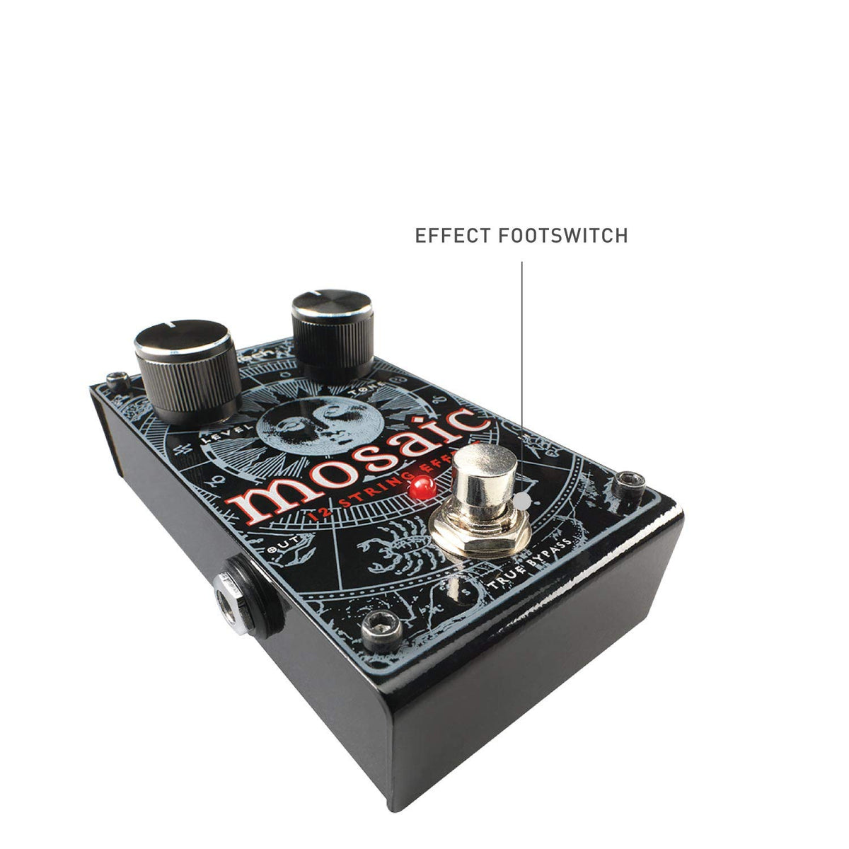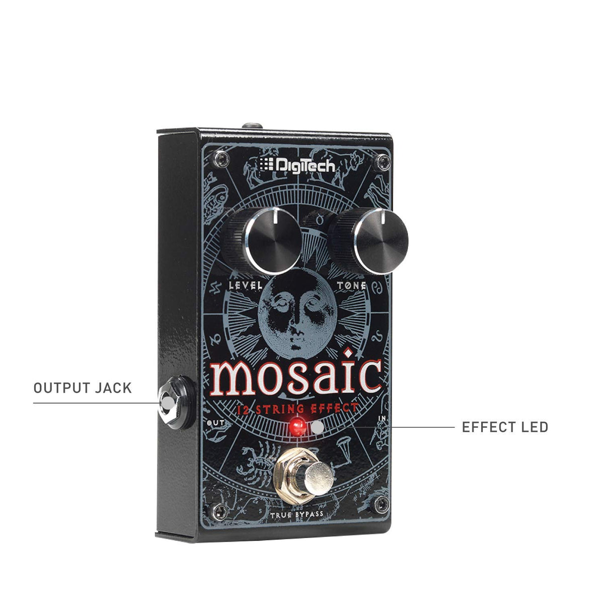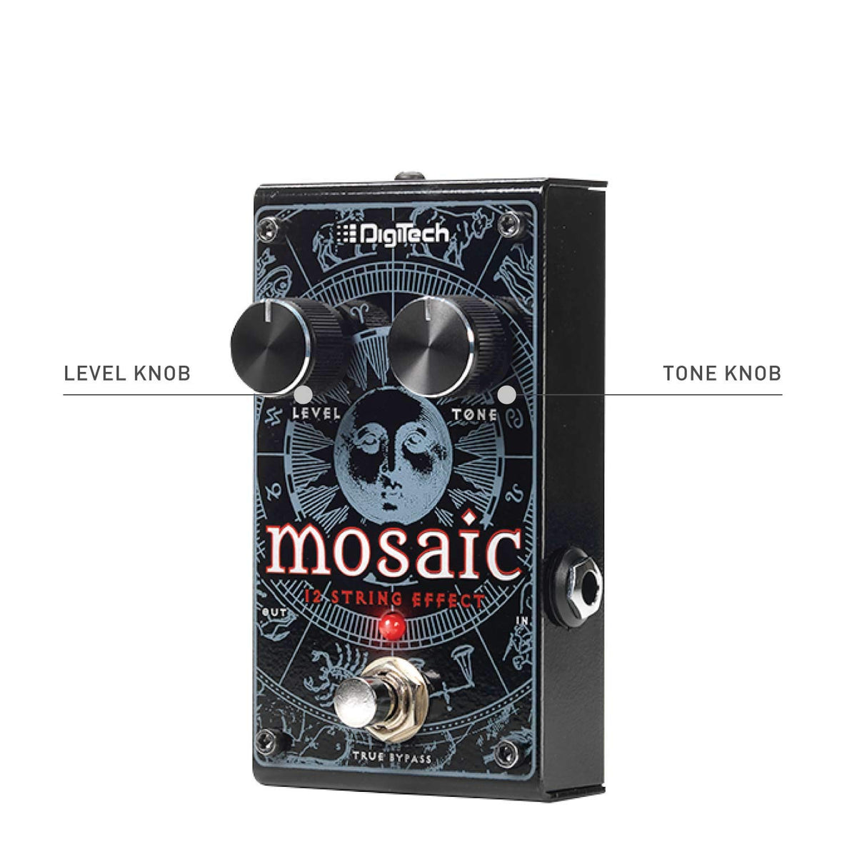 The Digitech Mosaic Polyphonic 12-String Effect Pedal Sets You Upon The Path Of Creating Lush 12-String Sounds With Either 6-String Electric Or Amplified Acoustic Guitars. Immediately Identifiable 12-String Tones Are Now Yours With Octave Low Strings And Doubled High Strings. Single Notes And Full Chordal Strums Shine With Polyphonic Richness And Celestial Movement That Will Inspire You. The Mosaic'S Balanced Low-End Response With Crisp Octave Shimmer Produces A Tone That'S Lush And Articulate, Just As With A 12-String Guitar. Tailor The Mosaic'S Sound With The Independent Level And Tone Controls. Level Will Control The 12-String Effect Intensity While Tone Shapes The Overall Brightness Of The Effect. The Mosaic Will Give You A Richer, More Resonant And Full Tone Than A Standard Six-String Guitar. It Is True Bypass And Uses A 9V Dc Power Supply To Easily Integrate Into Your Existing Pedalboard.