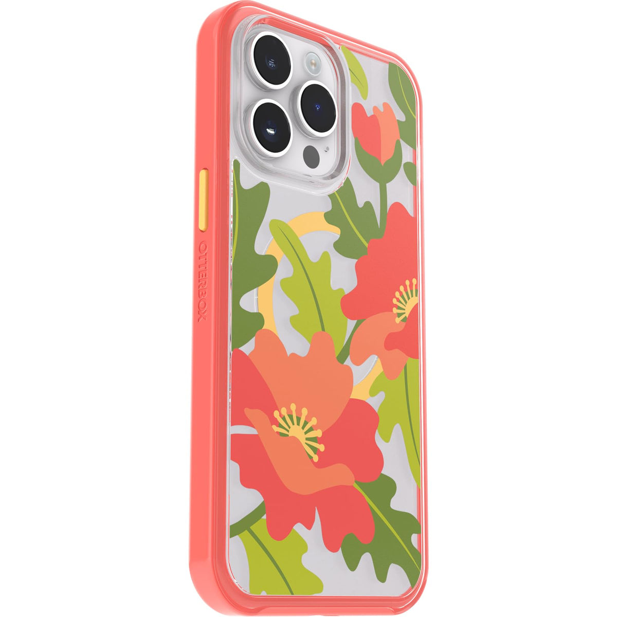 Otterbox Iphone 14 Pro Max Symmetry Series Clear Case Quilted Poppies (Red), Snaps To Magsafe, Ultra Sleek, Raised Edges Prote