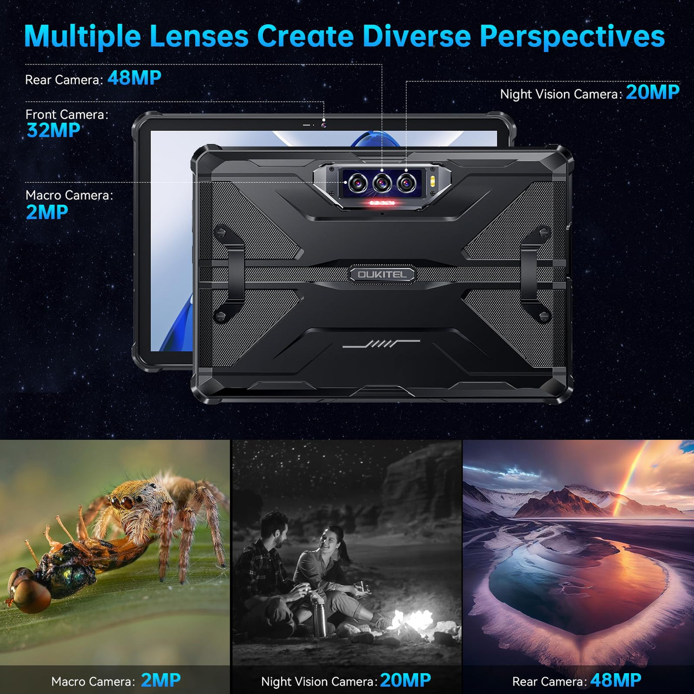 Oukitel Rt7 5G Rugged Android 13 Tablet,24Gb Ram +256Gb Rom Waterproof Tablet,32000Mah Battery 10.1 Inch Fhd+ Tablets,33W Fast Charging,48Mp+32Mp+20Mp Night Vision 4G Dual Sim+5G Wifi/Otg/Gps/T-Mobile
