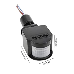 Specifications: Condition: New Color: Black Material: Abs Working Rotation: 180� Voltage: Ac90V~250V Standard: Lvd, Ce, Rohs Ip Rating: Indoor Application Ip64 Induction Lighting Time: 5S~6Min Adjustable Time Detection Distance: Approx. 12M, Installation 1.8-2.5M Height Load Power: 150 Watts