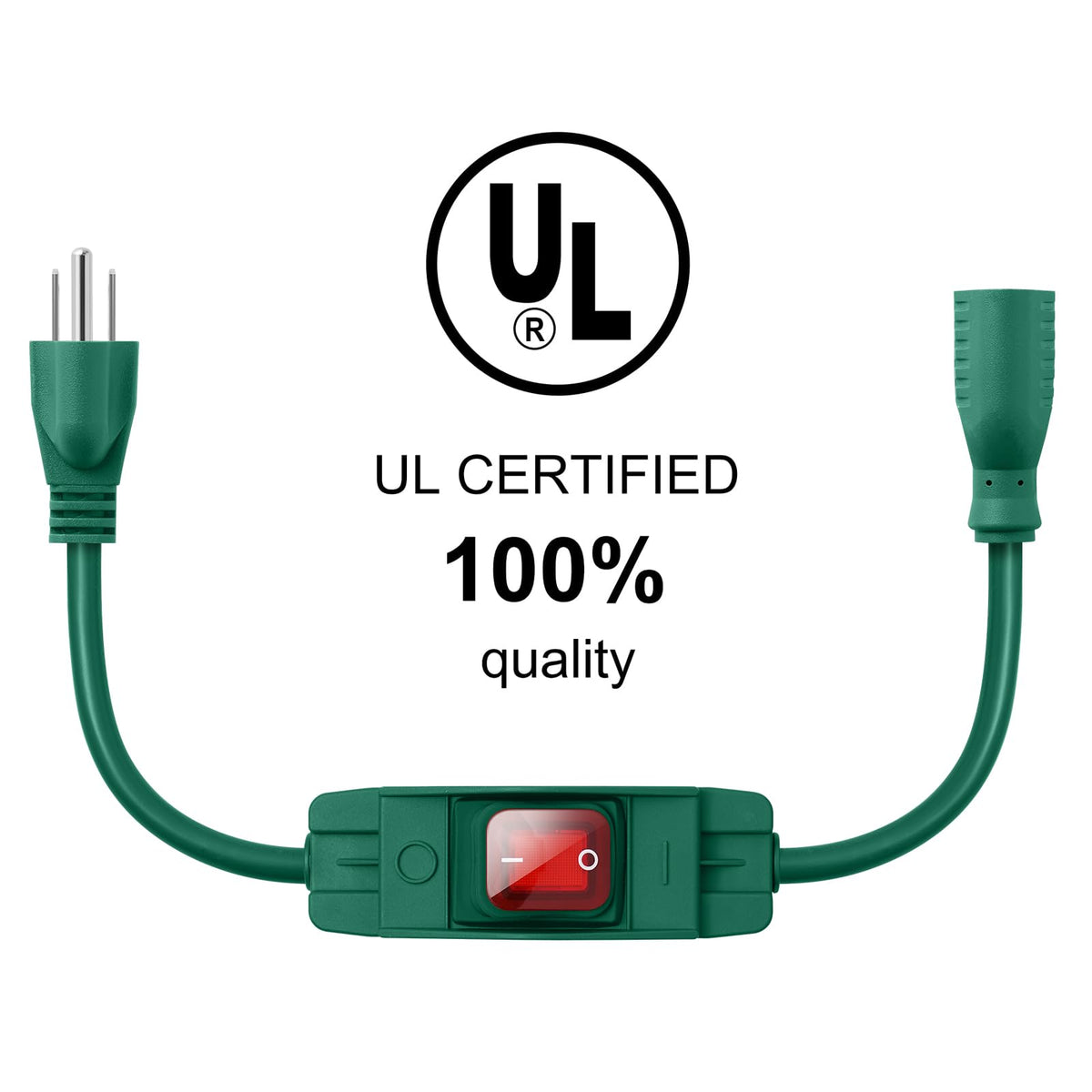 Note: The Switch Is Waterproof. If You Need To Use It Outdoors And Need Waterproofing, It Is Recommended That You Additionally Purchase ''Outdoor Plug Cover Weatherproof '' To Keep Cord Connections Secure And Protected From The Elements Like Water, Snow, Rain, Dust, And Dirt To Ensure Circuit Safety ( Note: It Is Just Water-Resistant. Do Not Submerse It In Water). Outdoor Extension Cord With On/Off Waterproof Switch 3 Prong Extension Cord With One Key Control Switch Is About 6 Ft In Length Versatile Cord Ul Certified Outdoor Extension Cord, Safe And Stable, Heavy Duty Extension Cord With Switch Is Strong Enough To Last A Lifetime. Extension Cord With On/Off Switch Waterproof Specification: Connectors: Nema 5-15P / Nema 5-15R Rated Current:15 A Rated Voltage:125 V Rated Power:1875 W Length:6 Ft Wire:14 Awg Cord Type:Sjtw Wide Range Of Use: The 35 Ft Extension Cord With Switch On/Off For Extending Outdoor Switch Power When You Need It Most,Which Is Suitable For Lamps, Holiday Lights, Outdoor Christmas Lights,Deck Lights, Outdoor Lights, Outdoor Edison Bulb String Lights, Pump, Patio Fountain, Rv Fans And Many Other Standard Electrical Equipment, Suitable For Outdoor, Indoor, Office, Workshop Or Garage.