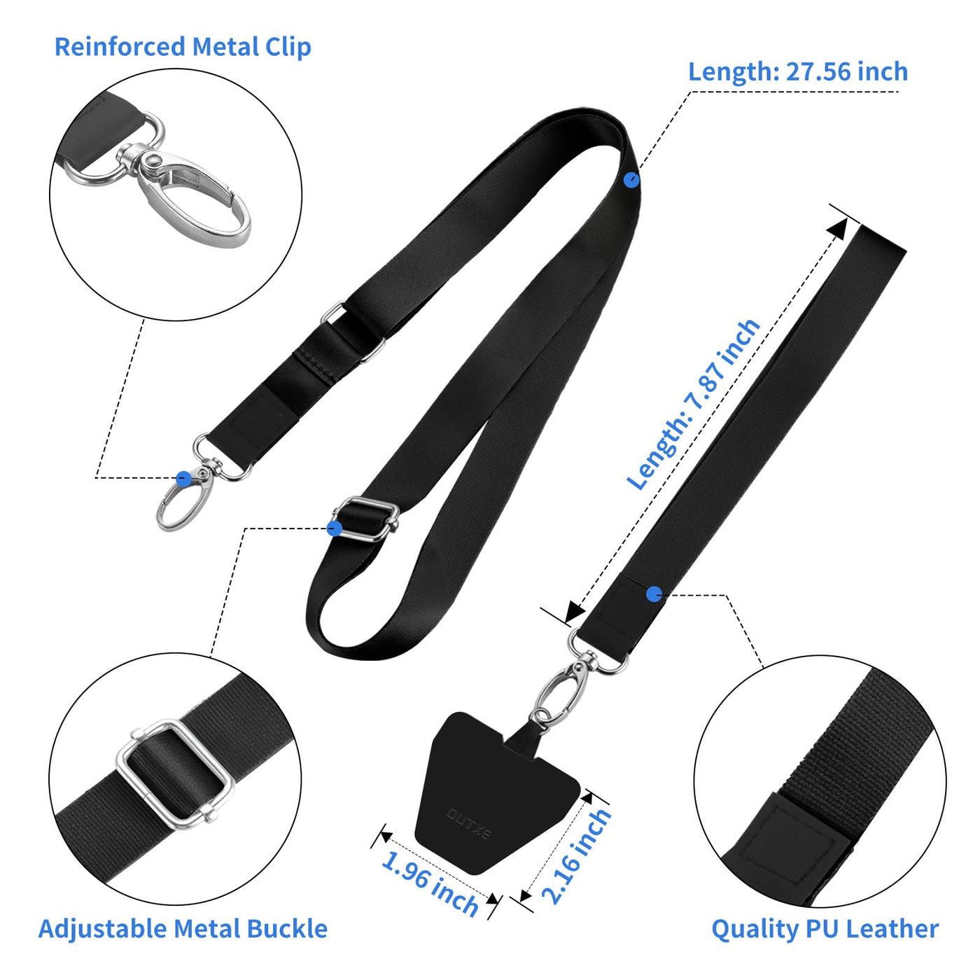 Outxe Phone Lanyard - 4 Pads, 1 Adjustable Neck Strap, 1 Wrist Strap, Nylon Lanyard Compatible With All Smartphone