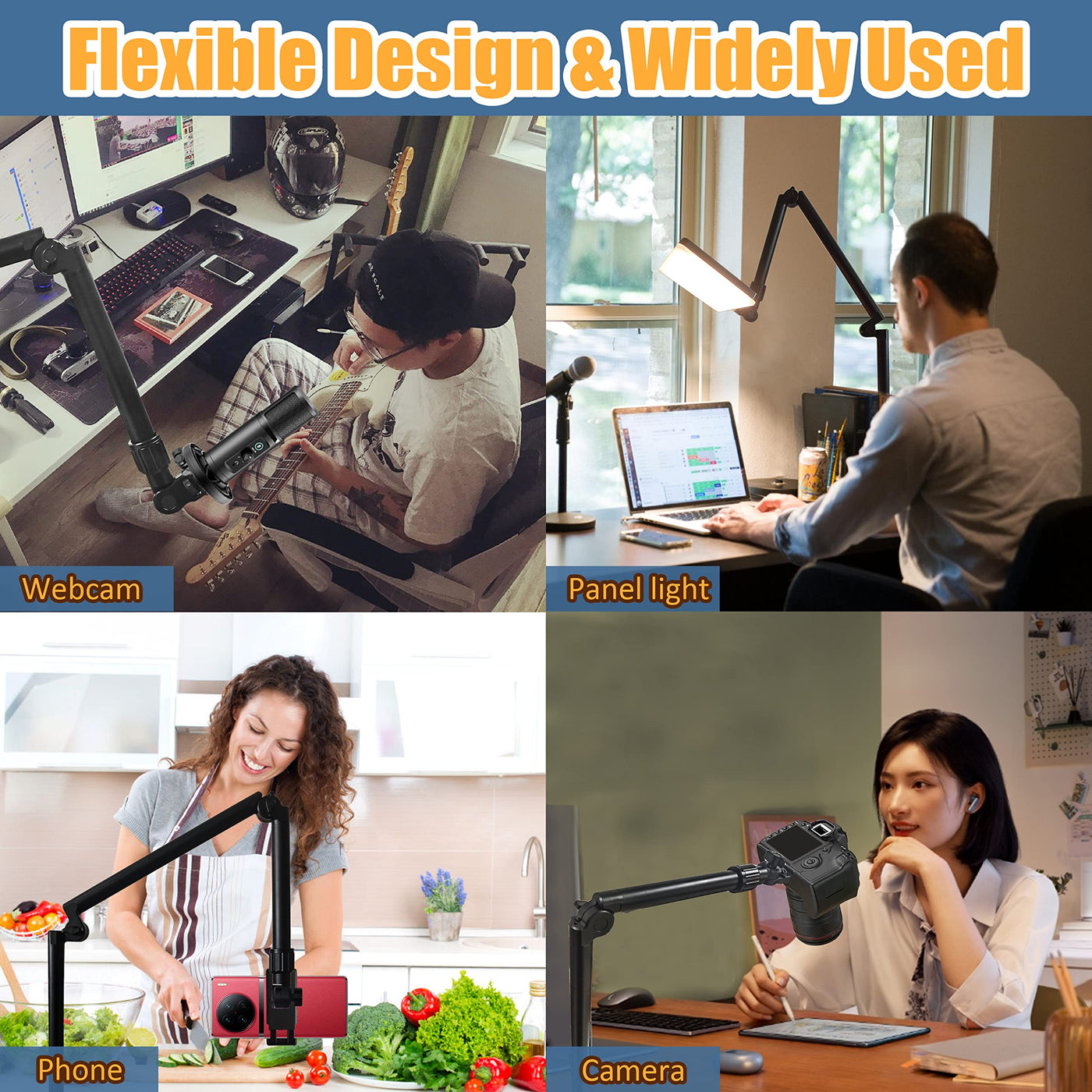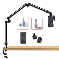 Overhead Camera Mount Desk Stand, Bearing 18Lb, Base& Top 360 Adjustable, With 1/4 3/8'' 5/8'' Screw, 3 Section Flexible Articul