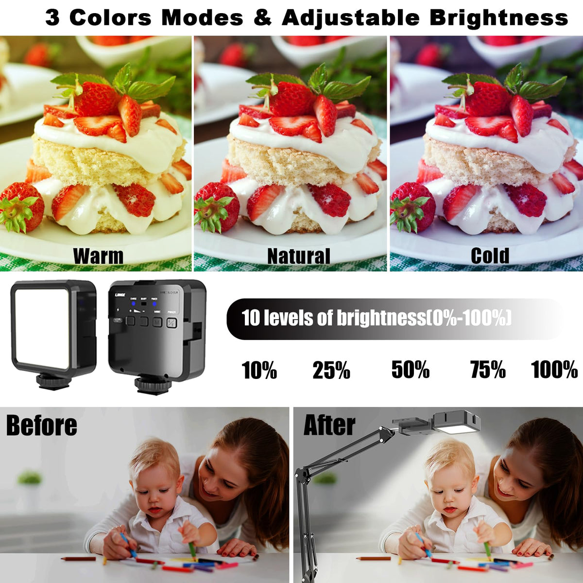 Overhead Phone Mount, Articulating Arm Cell Phone Holder With Led Light, Flexible Phone Stand For Live Streaming, Video Recordin