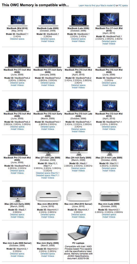 Owc 4Gb (2 X 2Gb) Pc8500 Ddr3 1066Mhz So-Dimms Memory Compatible With Late 2008 - Early 2010 Macbook, Macbook Pro Unibody Models, 2009/2010 Mac Mini, 2009 Imac, Late 2009 Macbook 13