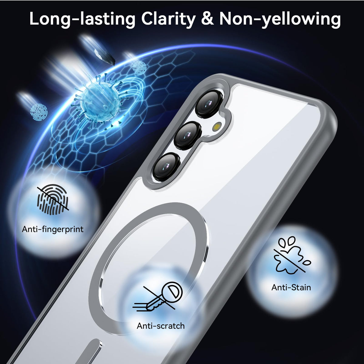 Q: How does the military-grade protection work for this phone case?A: The OWKEY Galaxy A15 5G Phone Case is certified military-grade drop tested, meaning it has been rigorously tested to withstand drops from heights of up to 10 feet. It combines a high-impact polycarbonate screen protector, durable TPU edges, and anti-collision technology to provide robust protection against drops, scrapes, and shocks.