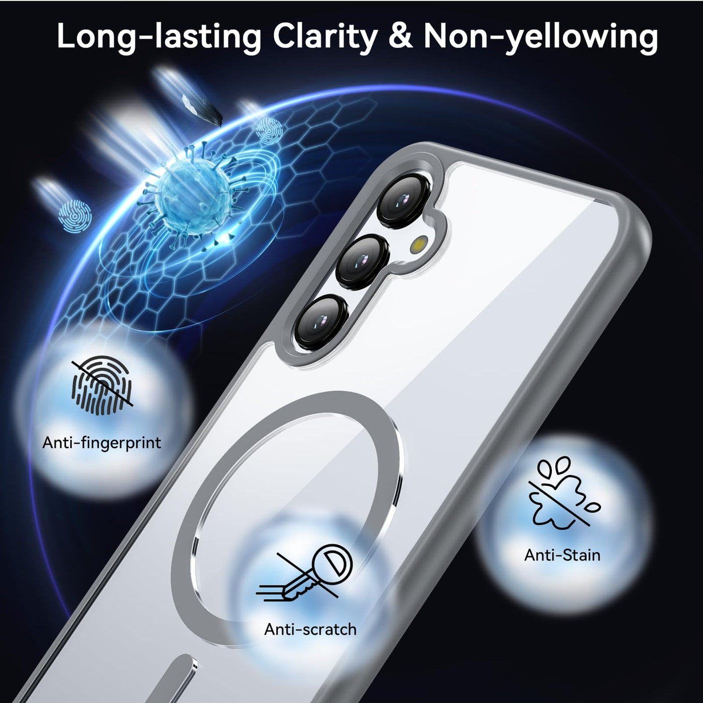Q: Is the OWKEY Galaxy A15 5G Phone Case compatible with MagSafe chargers?A: Yes, the OWKEY Galaxy A15 5G Phone Case features super magnetic attraction and is fully compatible with MagSafe chargers and other Qi wireless chargers, allowing for seamless charging without removing the case.