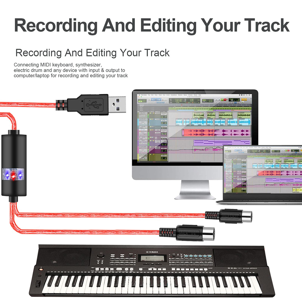 This Upgrade Usb Midi Cable Will Easy To Connect Any Midi Device To Pc /Laptop. Then You Can Play Songs While They Are Being Recorded On Your Computer. This Midi To Usb Cable Support Standard Md Interface Equipment Like Digital Piano/Electronic Drum Effects/Electronic Organ/Md Keyboard, Etc.. How To Use The Usb Midi Cable? Please Follow These Step. 1.Connect The Usb Midi Cable Marked In To The Midi Out Socket Of A Midi Keyboard (Or Midi Device) 2.Connect The Usb Midi Cable Marked Out To The Midi In Socket Of A Midi Keyboard (Or Midi Device) 3.Plug The Midi To Usb Cable Into Any Free Usb Socket On Your Computer, The Red Led Will Light To Show Power On 4.Open Your Music Software Program, E.G. Cubase, Sonar, Midi Connections, Etc 5.Set The Music Programs Midi In And Midi Out Devices To Usb Audio Device . 6.Your Usb To Midi Interface Is Now Ready For Use 7.To Save Potential Problems, This Usb To Midi Converter Is Recommended That This Interface Is Always Connected To The Same Sub As It Was Originally Installed On Usb To Prevent Multiple Installations Of The Driver The Usb Midi Cable Note: 1.Please Use Authentic Type-C To Usb Adapter When Connects With Your Mac Usb Port,And Make Sure All The Step Correct. Otherwise The Midi To Usb Cable May Not Work. 2.If You Want Use The Usb Midi Cable With Phone Or Pad, You Need Add A Otg Cable (Otg Cable Not Included). 3.Please Far Away Radios And Tvs Placed Nearby May Cause The Reception Interference. Operate This Usb To Midi Converter At A Suitable Distance From Other Devices. The Usb Midi Cable Package Contents: 1 X Midi To Usb Cable 1 X Package Keywords: Midi Cable, Midi To Usb, Usb Midi Cable, Usb To Midi Converter, Midi Interface, Midi Cables, Keyboard Cable, Midi Cable To Usb,Midi To Usb Cable For Keyboard,Usb To Midi, Usb Mini To Usb,Midi Out To Usb, 5 Pin Midi Cable,