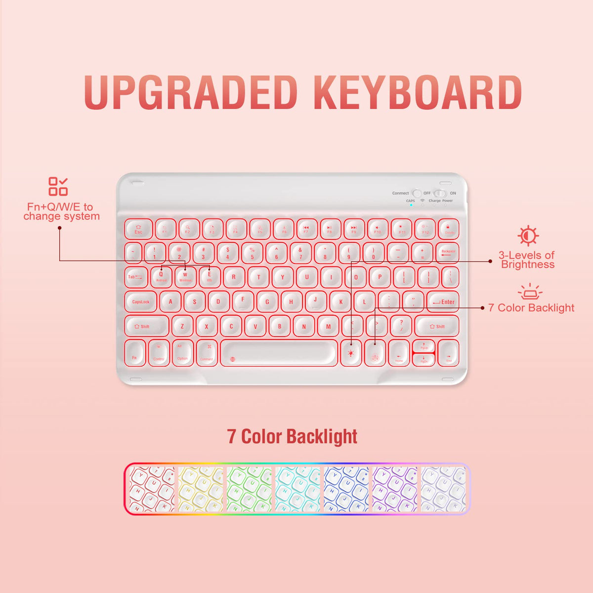Q: How does the detachable backlit keyboard work?A: The detachable backlit keyboard connects wirelessly via Bluetooth, providing a comfortable typing experience. It features 7 different backlight colors, allowing you to use it in low-light conditions easily.