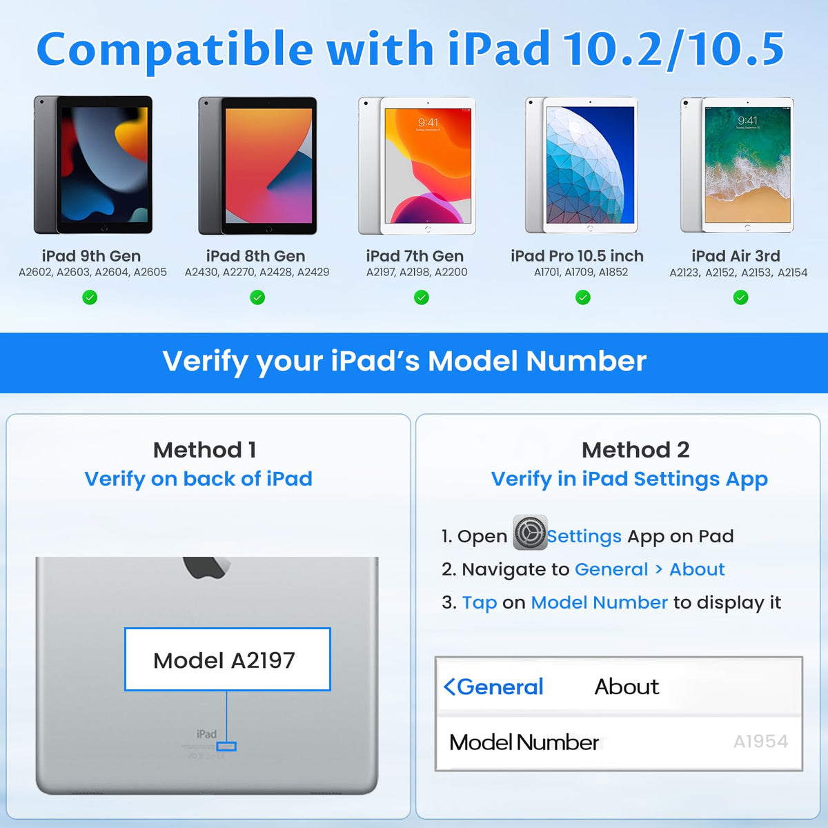 Q: Is the OYEEICE case compatible with the iPad 9th generation?A: Yes, the OYEEICE case is specifically designed for the iPad 9th generation, as well as the iPad 8th, 7th generation, iPad Air 3rd generation, and iPad Pro 10.5 inch models. Make sure to check the model number on the back of your iPad to confirm compatibility.