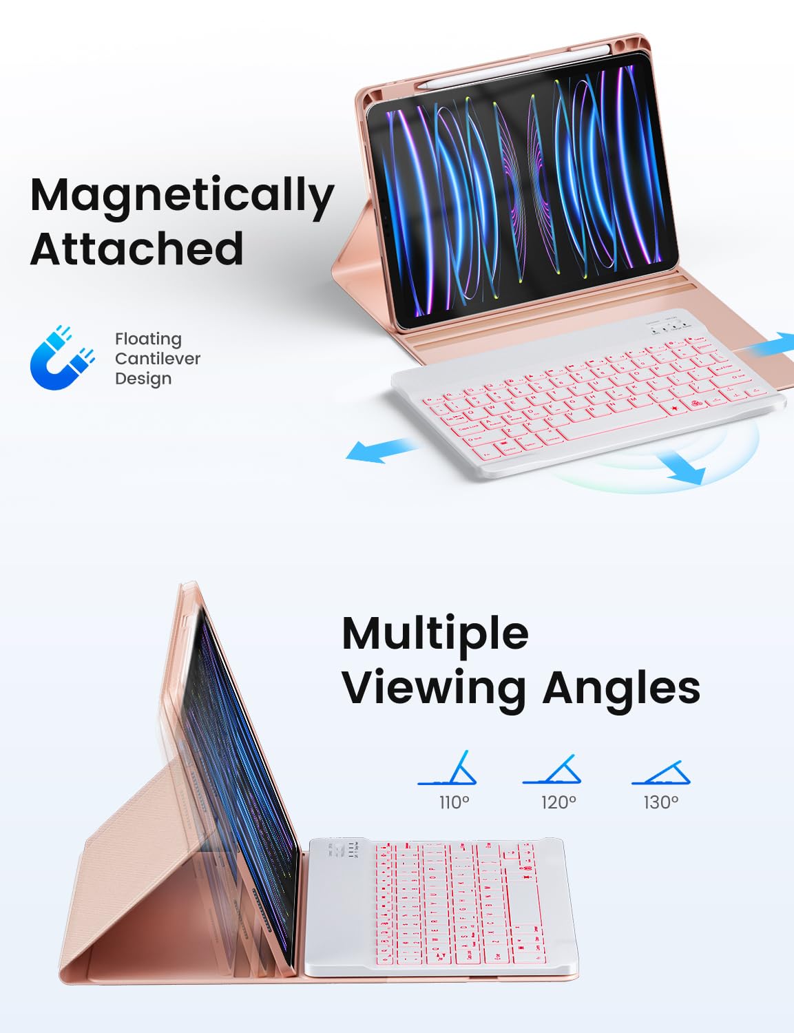 Introducing The Tablet Keyboard Cases From Oyeeice- The Perfect Accessory For Your Ipad Air 5Th/4Th Gen, Ipad Pro 11 Inch, Ipad 10.9 Inch! This Sleek And Stylish Black Case Comes With A Built-In Keyboard That Enhances The Functionality Of Your Ipad And Lets You Get More Done, Whether You'Re Working On Important Documents Or Simply Browsing The Web.Crafted With High-Quality Materials, This Case Provides Superior Protection For Your Ipad Against Scratches, Knocks, And Drops. Its Soft Microfiber Interior Keeps Your Device Snug And Scratch-Free When You'Re Carrying It Around, And The Precise Cutouts Ensure Easy Access To All Ports And Buttons.The Keyboard Is Detachable, The Case Has A Magnetic Closure, And You Can Switch Between 7 Backlight Colors- A Unique Feature That Offers Superb Convenience And Versatility That Might Come In Handy In A Dimly Lit Room.In Summary, Our Tablet Keyboard Case Offers A Perfect Combination Of Style And Functionality, Making It The Perfect Accessory For The Busy Professional Or Any Ipad User Who Wants To Maximize Their Productivity. Get Your Hands On The Oyeeice Ipad Air 5Th Generation Case With Keyboard Today And Experience The Benefits For Yourself!