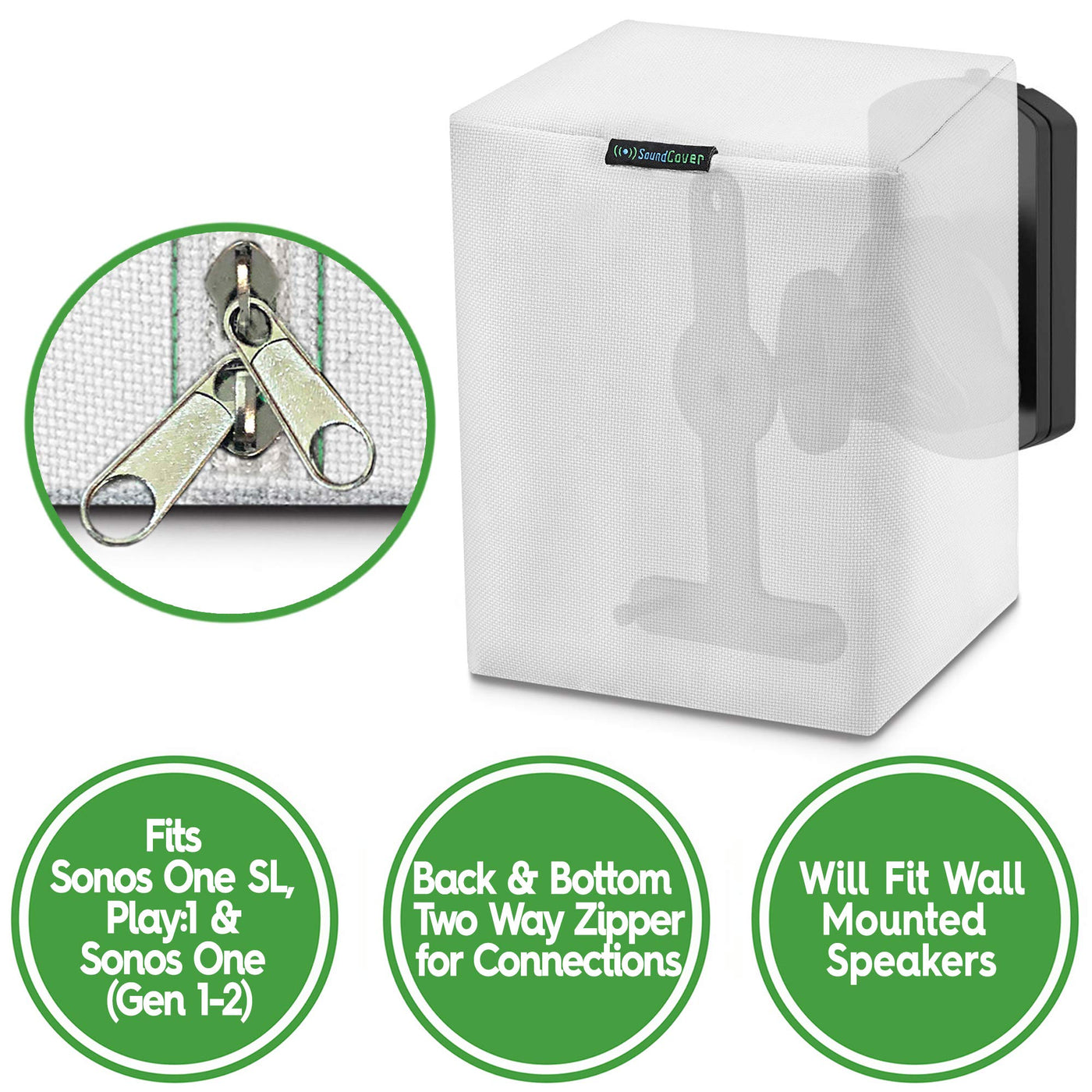 ? 2 White Covers For Sonos Play:1 And Sonos One Speakers - Two White Covers For Sonos Speakers Play:1 And Sonos One (1St Gen &Amp; 2Nd Gen). Speaker Cover Will Fit Speakers That Are 4.9 Inches In Width, 4.9 Inches In Depth, 6.5 Inches In Height. ? Water Dust And Uv Protective Sonos Speaker Covers - The Covers Are Made From Heavy Duty 600D Polyester And Will Provide Protection When Speakers Are Outdoors. Covers Can Not Be Used While Playing! ? Will Fit On Wall Mounted Sonos Speakers - These Sonos Covers Have A Back And Bottom Wide Double Zippered Opening That Allows The Covers To Be Used On Wall Mounted Speakers, Zipper Opening Will Allow Space For Speaker Connections. ? Take Your Sonos Speakers Outdoors! - These Sonos Speaker Covers Are Ideal For Travel, Wall Mounted And Outdoor Mounted Speakers. Prolong The Life Of Your Sonos Play:1 And Sonos One Speakers. ? Soundcover No Questions Money Back Gurantee - We Don'T Ask Questions! Unhappy With Our Sonos Speaker Covers? Let Us Know And We Will Refund Your Purchase In Full!