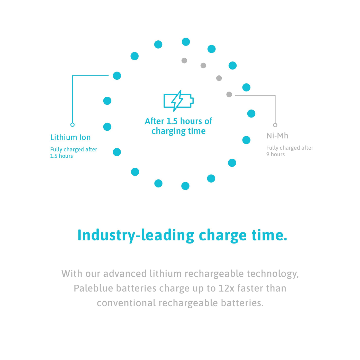 Pale Blue Is Focused On Creating A Better Future By Leveraging Technology, Innovation, And Inspired Product Creation To Greatly Improve Our Utilization Of Energy And Resources And Greatly Reduce The Amount Of Waste We All Produce. Pale Blue Rechargeable Batteries Have Better Voltage Stability, Current Output, And Stability Than Alkaline And Old School Nimh Rechargeable Batteries. Our Batteries Charge In One Fifth The Time Of A Similar Nimh Rechargeable! In America Alone, 10 Million Batteries Are Thrown Away Every Day. One Pack Of Pale Blue Usb Rechargable Lithium Batteries Can Replace Up To 4,000 Alkalines. Making The Switch Can Save You Money And Keep Toxic Disposable Batteries Out Of Landfills. #Ditchdisposables