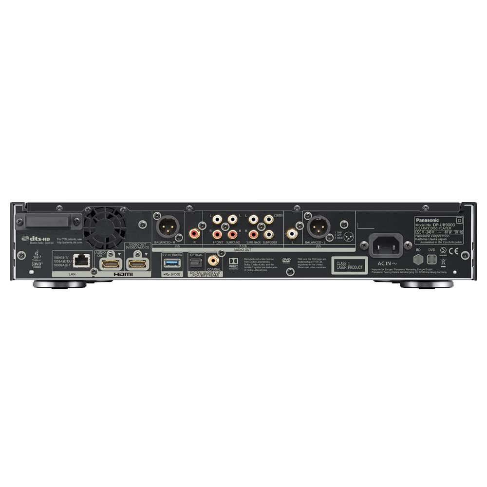 Plays Dvd Discs From All Regions (0 - 8) | Plays Blu-Ray Discs From All Regions (A, B, And C) | Built-In 4K Ntsc?Pal 4K Hd Converter | Panasonic'S 4K Pro Hdr Model Ultra Hd Blu-Ray Player Features An Hcx Processor For Ultra Hd Blu-Ray Packed With Original Imaging Technologies For Stunning Picture Quality. The Precise Colors And Hdr Reproduction That Form The Essential Elements Of Ultra Hd Are The Basis Of High-Defifinition Images. They Bring You A Whole New Viewing Experience That You'Ve Never Had Before. | Panasonic Ultra Hd Blu-Ray Players Support Multiple Hdr Formats, Such As Hdr10, Which Is The Standard Hdr Format For Films, And Uhd Blu-Ray Discs. They Newly Support Hdr Playback Of Hdr10+Tm Dynamic Metadata, The Next-Generation Standard. And They Are Compatible With Dolby Vison And Hybrid Log-Gamma. The Synergistic Effect Achieved With Panasonic'S Original High-Quality Image Technologies Enables Even More Precise Image Expression. | This Thx-Certified Model Reproduces The Finely Nuanced Colors And Rich, Detailed Images That The Film Creator Intended, And Achieves Lifelike Surround Sound. You Can Watch Movies At Home In Comparable Quality That You Enjoy At Cinema. | A Newly Developed Base With A 3-Dimensional, Thick Steel Plate Fixes The Optical Disc Drive To The Center Of The 2-Layer Chassis To Reduce Vibration And Noise During Disc Rotation. And Thick Aluminium Is Used On The Front And Side Panels. This Raises The Rigidity Of The Chassis, And Reduces Vibration. | The Analogue Circuits For 2 Channel And 7.1 Channel Output Are Mounted Onto Special Glass-Epoxy Circuit Boards. Together With The Use Of Quality Components, Such As Low-Noise Operational Amplifiers And Audio Grade Electrolytic Capacitors, A Totally Balanced Signal Transmission Is Achieved By Using Differential Circuits All The Way From The D/A Converter Output To The Xlr Output Terminal. | The 2 Channel And 7.1 Channel Output Terminals Are Also Separated. Moreover, The 2 Channel Output Is Equipped With A Balanced Xlr Output Terminal In Addition To The Rca Terminal.