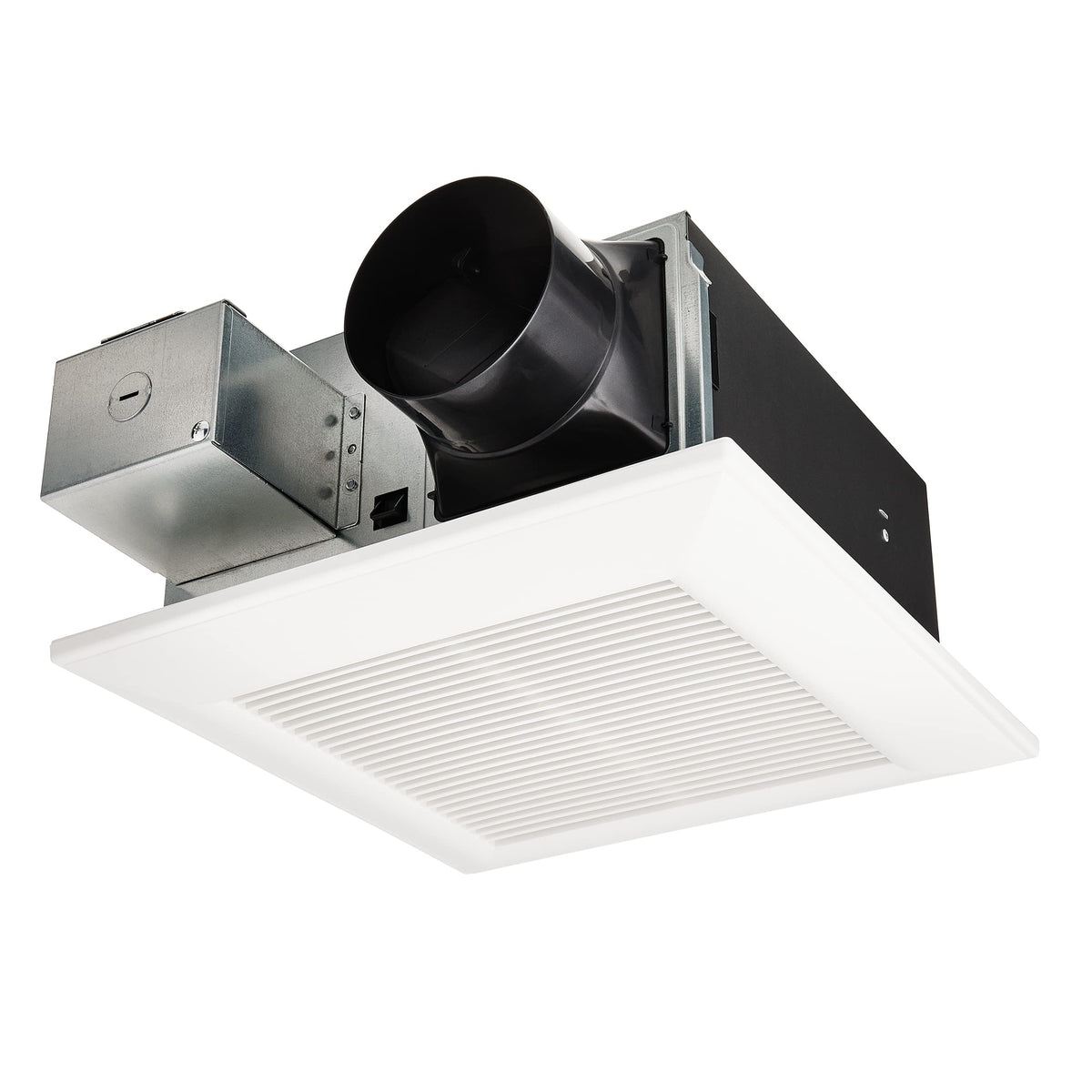 Q: How easy is it to install the Panasonic WhisperFit Bathroom Exhaust Fan?A: Installation is straightforward with the Flex-Z Fast Bracket, which allows for easy positioning with a single-hinge design. The fan's low-profile housing fits in 2 x 6 joist sizes or larger, making it compatible with most bathroom ceilings. Pre-installed alignment guides and a temporary clip facilitate quick and secure installation.