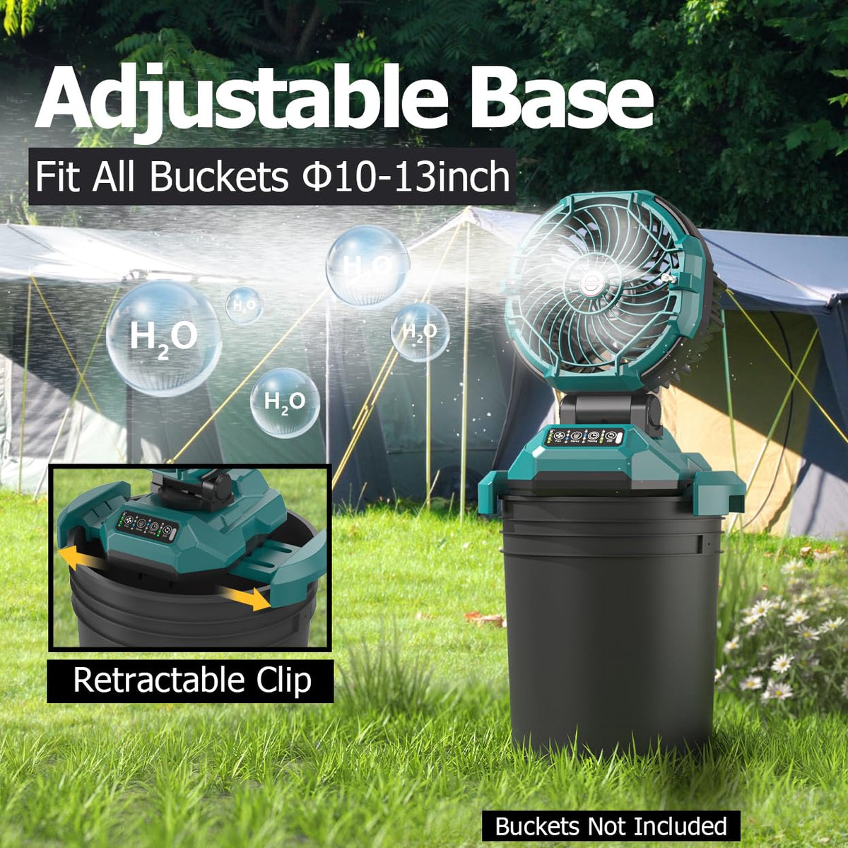 Panergy Portable Misting Fan For Outdoors-30000Mah Rechargeable Battery, 4-Speed Fan,4 Spray Modes,10-13 Inch Bucket Compatible,