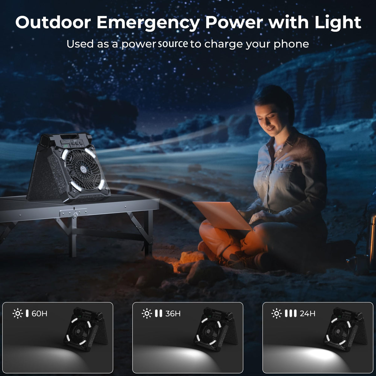 Panergy Solar Fan With Lantern For Camping, Rechargeable Battery Powered Fan(36H Cooling/60H Lighting), 4-Speed, 8H Timer, 90Fol