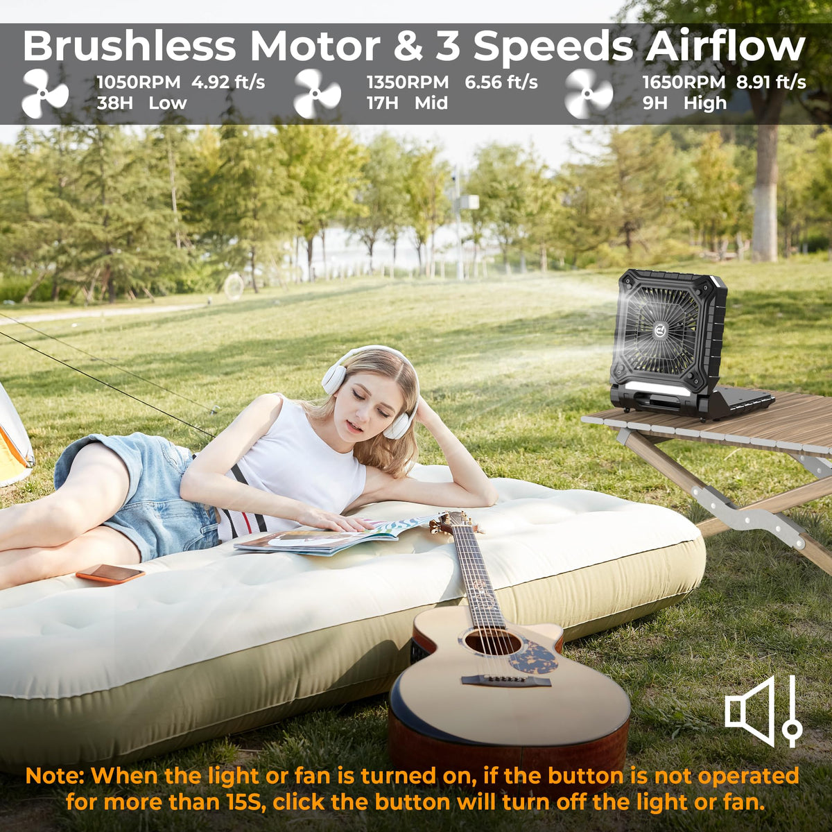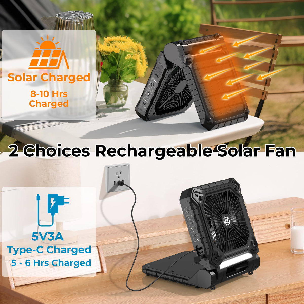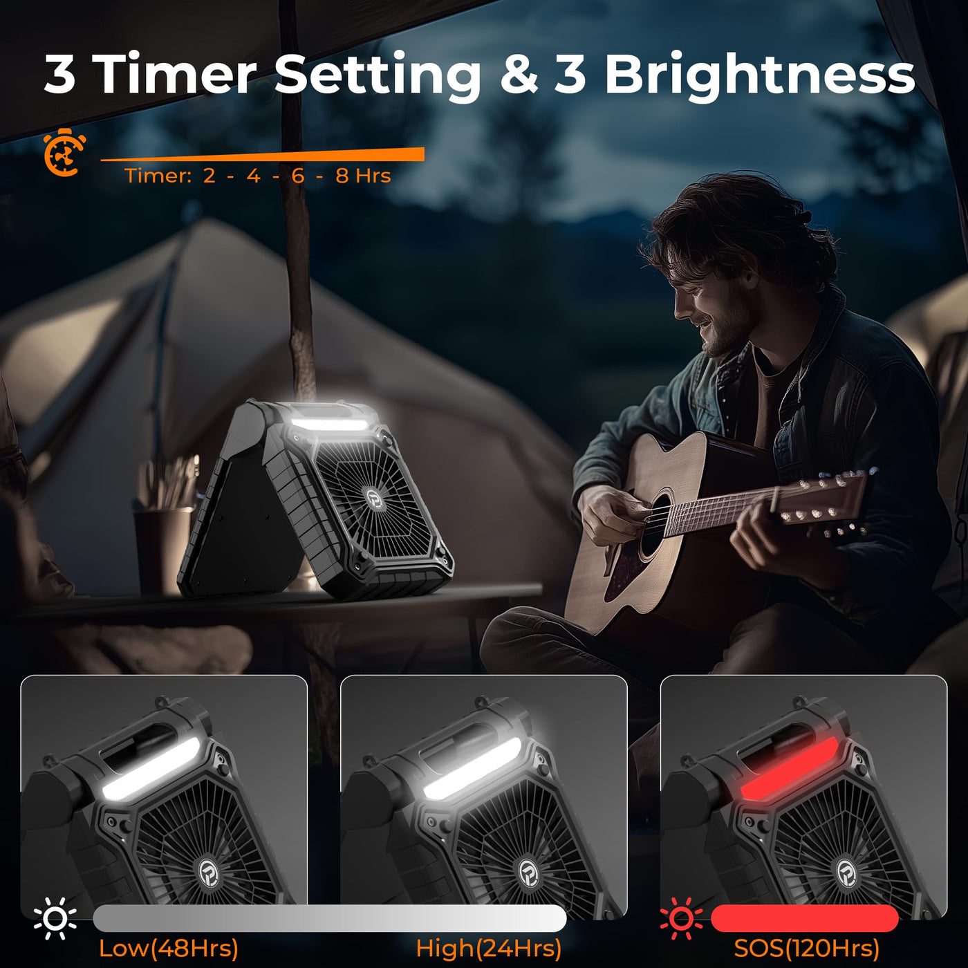 This Professional Camping Gear Is Your Ultimate Outdoor Companion. Offering A Cooling Fan, Bright Led Lights, It Ensures Comfort And Convenience Wherever You Go. With Solar And Traditional Charging Modes, Multiple Speeds And Light Levels, And A Handy Timer, This Fan Is Designed For Efficient And Flexible Use. Dont Let The Heat Ruin Your Outdoor Experience. Stay Cool With Our Solar Camping Fan.