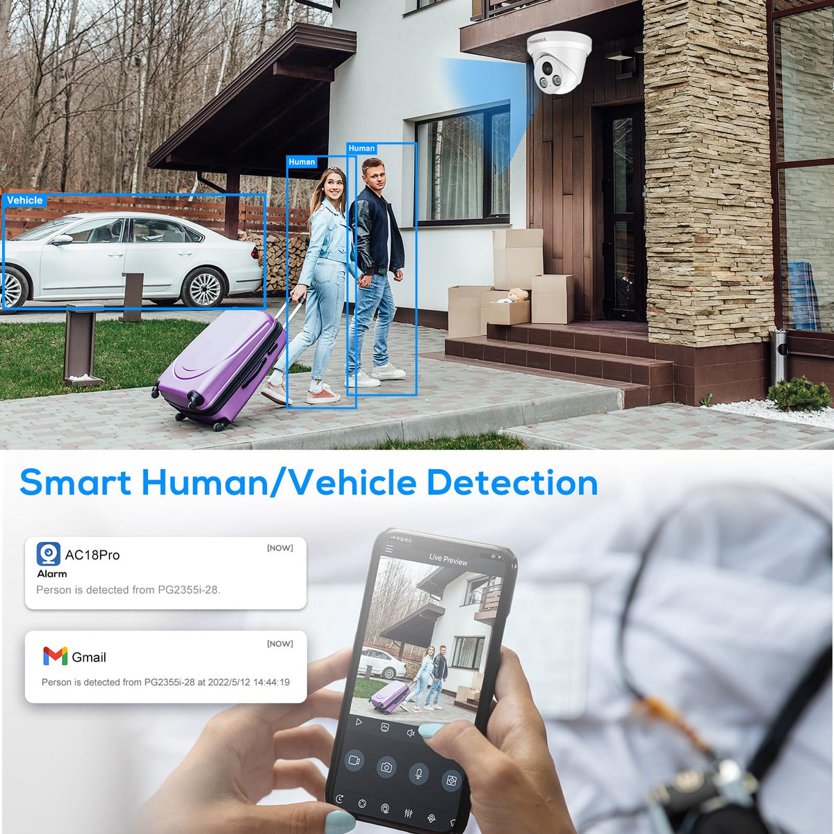 Panoeagle 5Mp Ip Poe Security Camera With Audio/Mic,5Mp@30Fps, Human/Vehicle Detection,98Ft Ir Night Vision, Wide Angle 2.8Mm Le