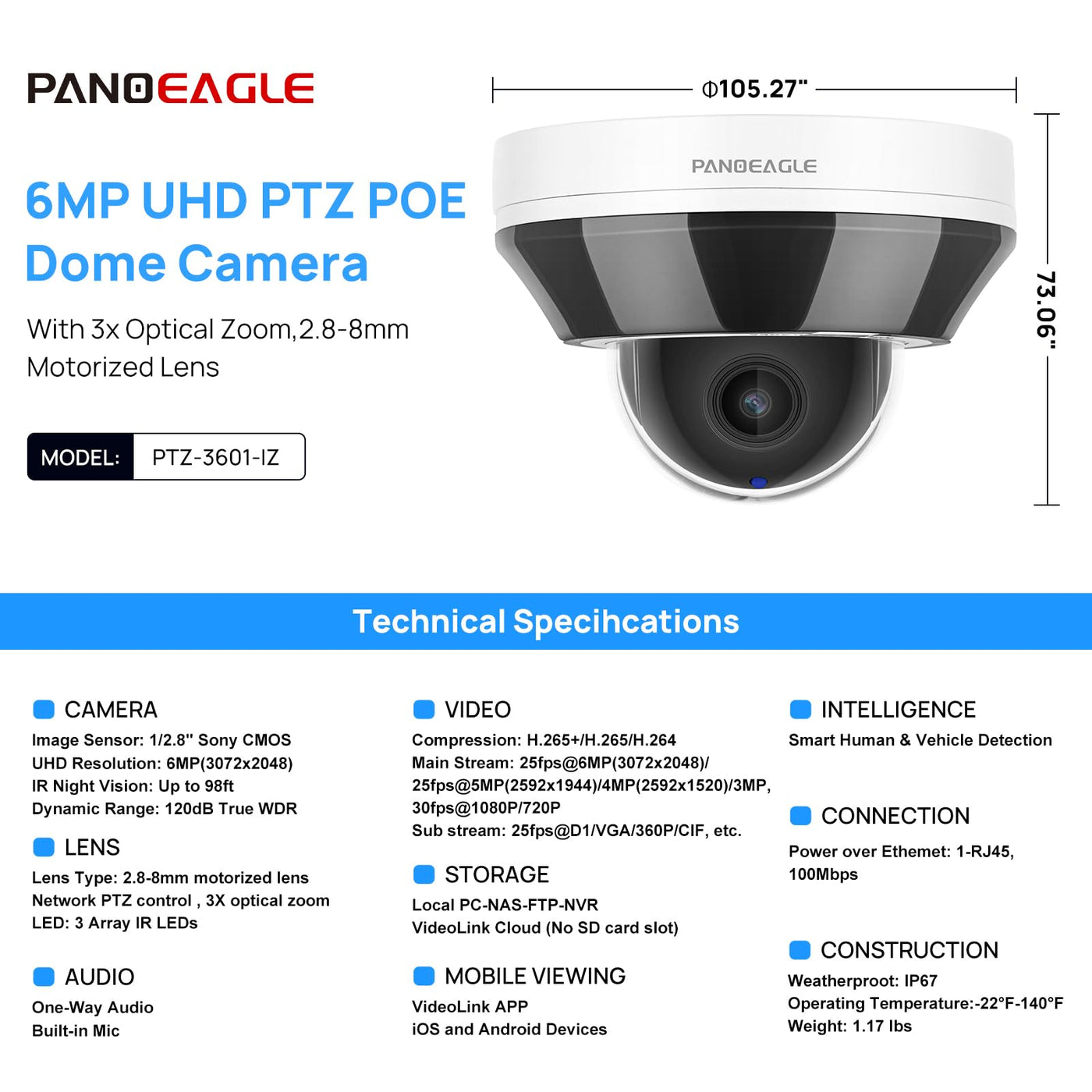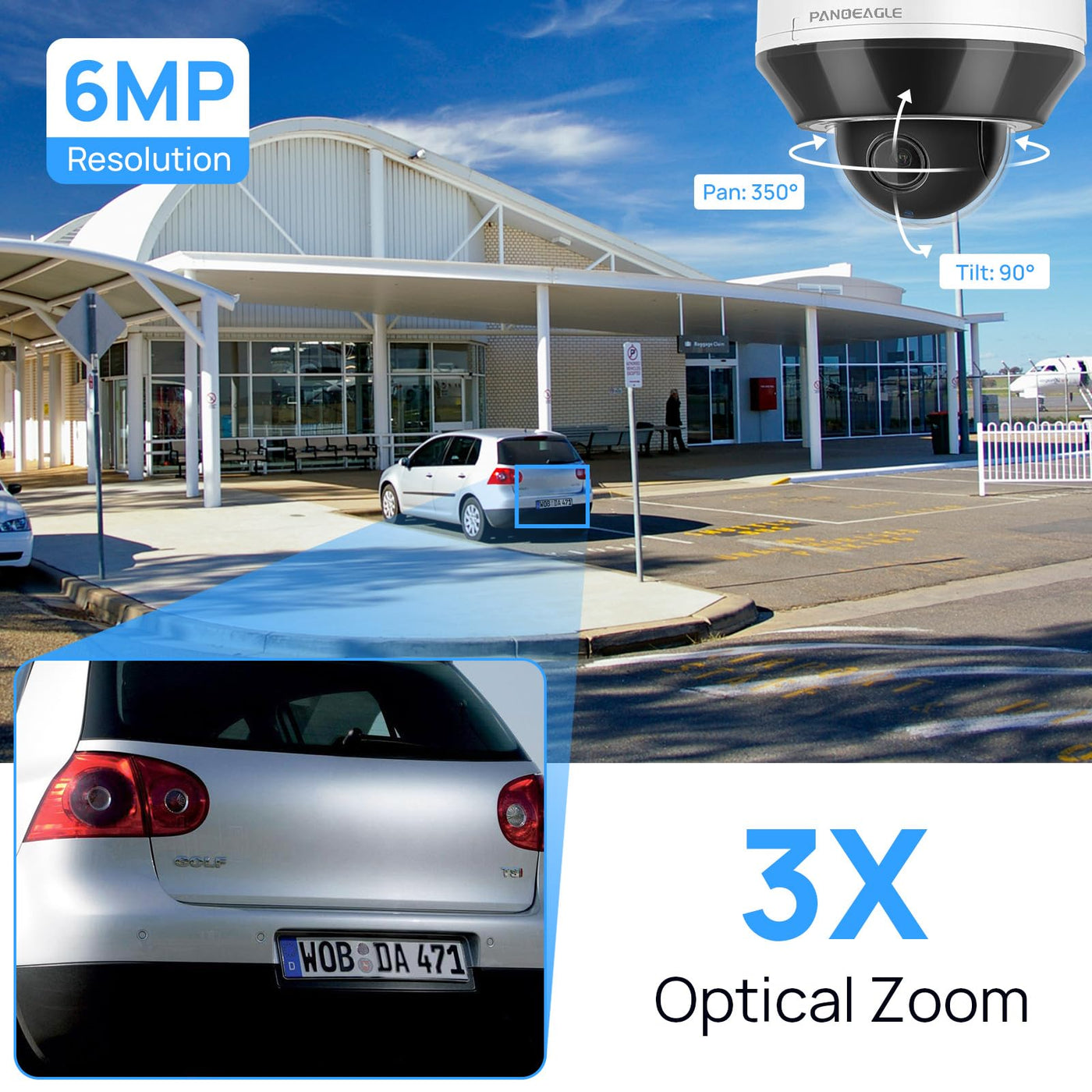 Panoeagle 6Mp Ip Poe Ptz Camera Outdoor With Pan/Tilt 3X Optical Zoom, 2.8 8Mm Motorized Lens, Built In Mic, 98Ft Ir Night Visio
