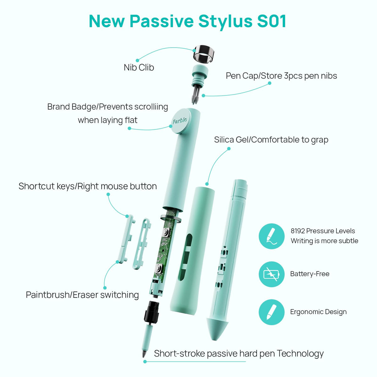 ?Advanced S01 Passive Pen?: Our Upgraded S01 Passive Pen Incorporates Cutting-Edge Short-Stroke Hard Pen Technology. Feel The Precision Of Traditional Pens Without The Wobbling. Enjoy Exceptional Touch Sensitivity And Accuracy For A Truly Natural Writing And Drawing Experience. | ?Effortless Mode Selection?: Switch Between 4 Preset Modes - Mobile, Tablet, Chromebook, And Custom - With Ease Using The Intuitive Knob. No Need For Setup When Connecting To A Computer; Its Ready Out Of The Box In Mobile Phone Mode, Ensuring A Smooth Creative Journey. | ?Immerse In Natural Drawing?: Dive Into Natural Drawing With The Battery-Free Stylus S01. With 8192 Pressure Levels And