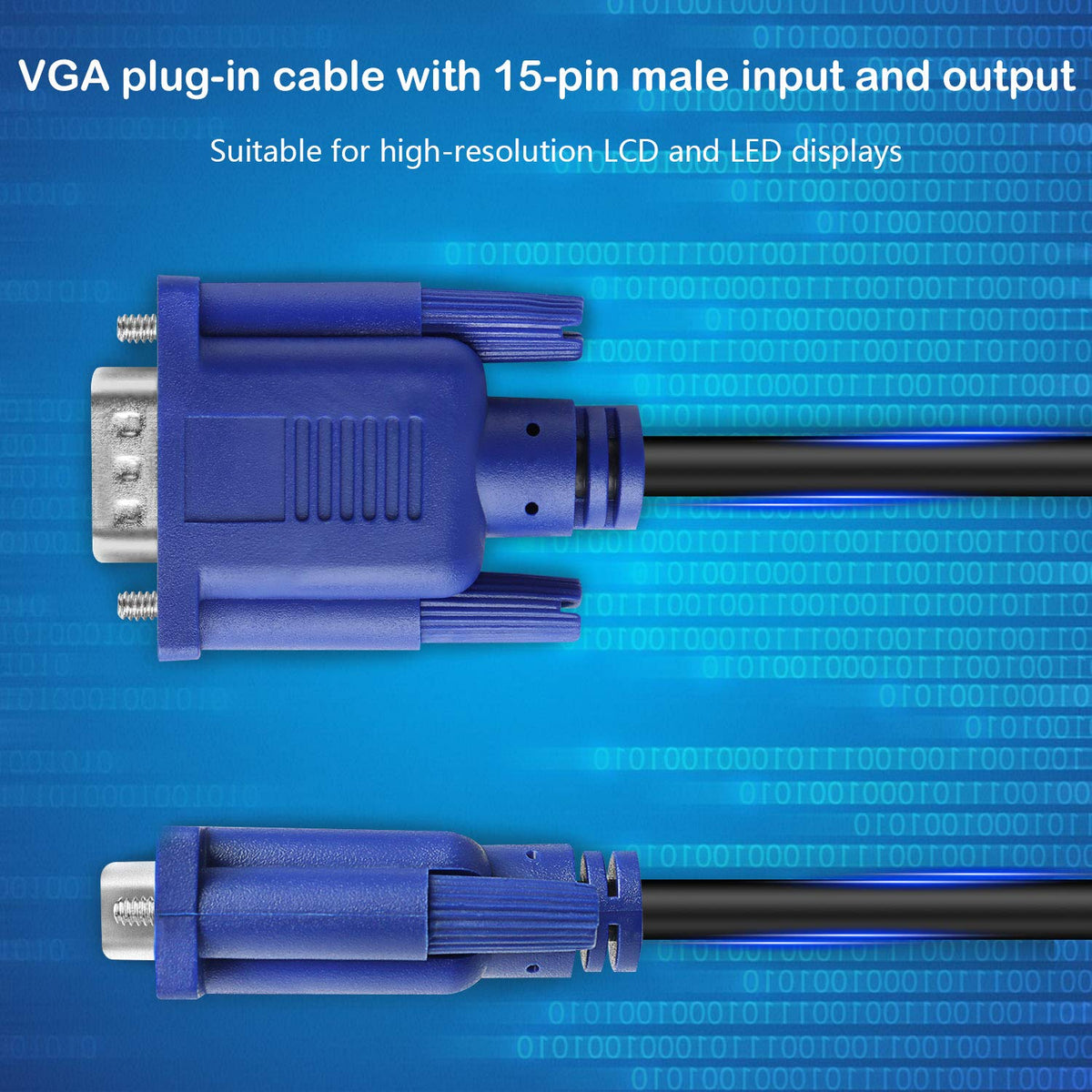 The Vga Cable Is The Ultimate Link For Connecting Your Desktop Or Laptop To A Monitor Or Projector. The Combination Of Gold-Plated Connectors, Bare Copper Conductors, Foil & Braid Shielding, And Dual Ferrite Cores Provides Superior Cable Performance.Low Impedance, Signal Distortion Is Small, 99.9% Reduction Signal. Specifications Connector: Hdb15 15-Pin (Male To Male) 100% Bare Copper Conductor. Foil & Braid Shielding And Integrated Dual Ferrite Cores On The Vga Wire Minimize Crosstalk, Suppress Noise, And Protect Against Electromagnetic Interference (Emi) And Radio Frequency Interference (Rfi)