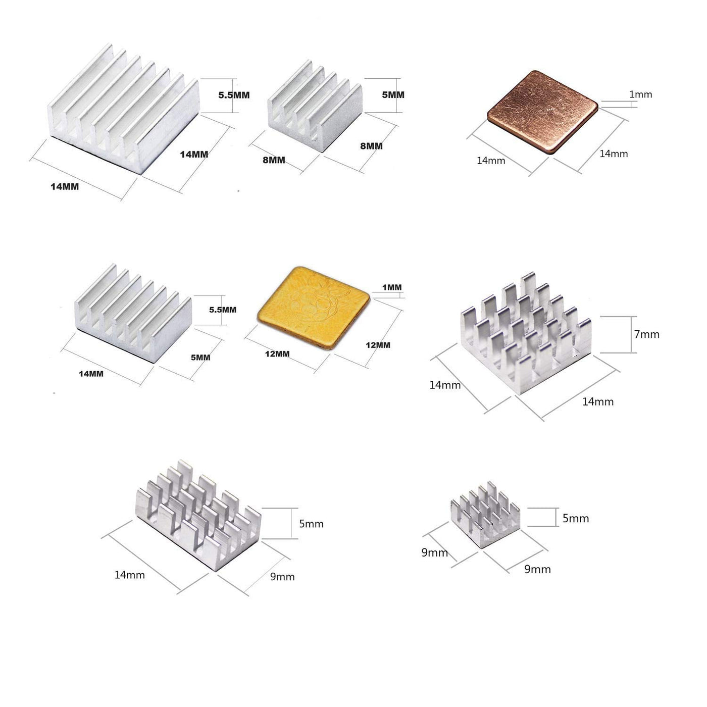 Pastall 100 Pcs (8 Different Sizes) Heatsink Kit With Conductive Adhesive Tape, Aluminum Heat Sinks Cooler And Copper Heat Sink For Raspberry Pi A B B+ 2/3/4/5