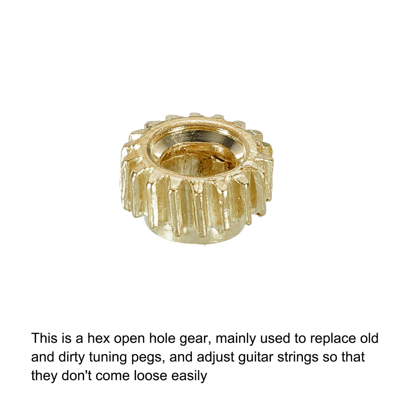 What Is This?This Is A Hex Open Hole Gear, Mainly Used To Replace Old And Dirty Tuning Pegs, And Adjust Guitar Strings So That They Don'T Come Loose Easily.What Will I Get?The Guitar Tuning Peg Button Is In Size Of: Overall Height: 5.6Mm / 0.22 Inch; Outer Diameter: 10.2Mm / 0.40 Inch; Inner Hexagon Width: 3.6Mm / 0.14 Inch; The Gear Rate: 1:18.In The Package Of 6Pcs &Times; Guitar String Tuning Peg Gearsare There Any Advantages Of The Product?Made Of Iron Material, It Is Sturdy And Durable To Ensure Long-Term Use. The Gear Can Effectively Prevent The Lead Screw From Slipping, So That The Guitar Strings Are Not Easy To Loosen.What Should I Notice?Please Check The Size Of The Installation Part Before Purchasing!