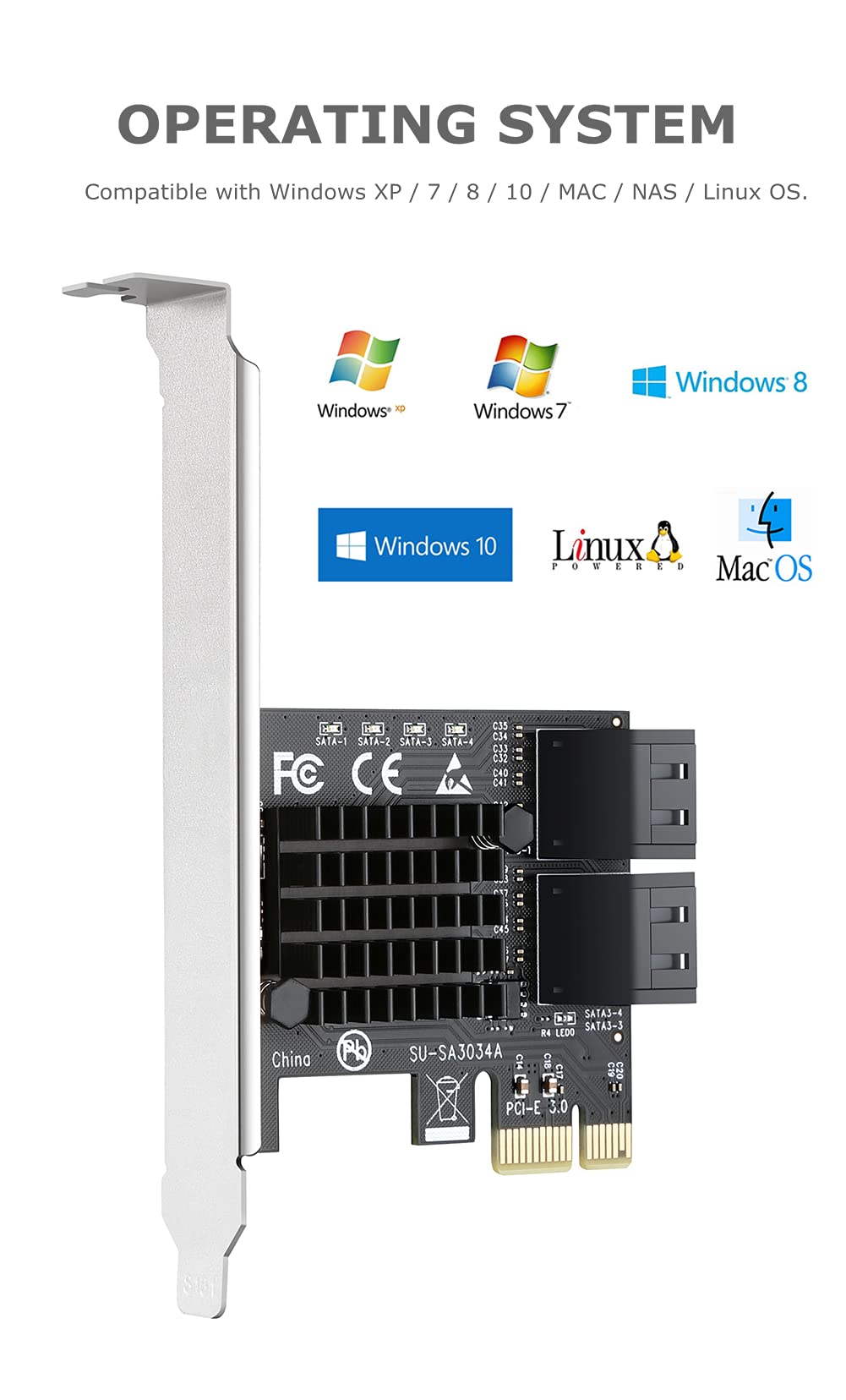 Pcie Sata Card 4 Port,Pci Express To Sata 3.0 Ports Expansion Controller Boot As System Disk For Desktop Pc Support Ssd And Hdd With Low Profile Bracket And 4 Sata Cable
